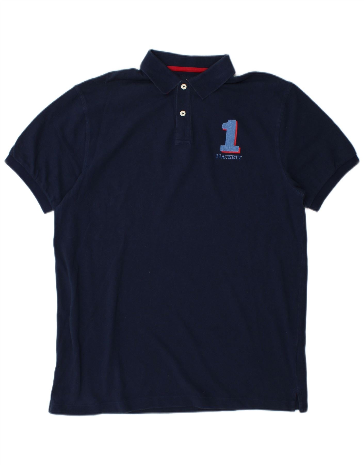 Camisa polo masculina HACKETT Classic Fit gráfica grande algodão azul marinho