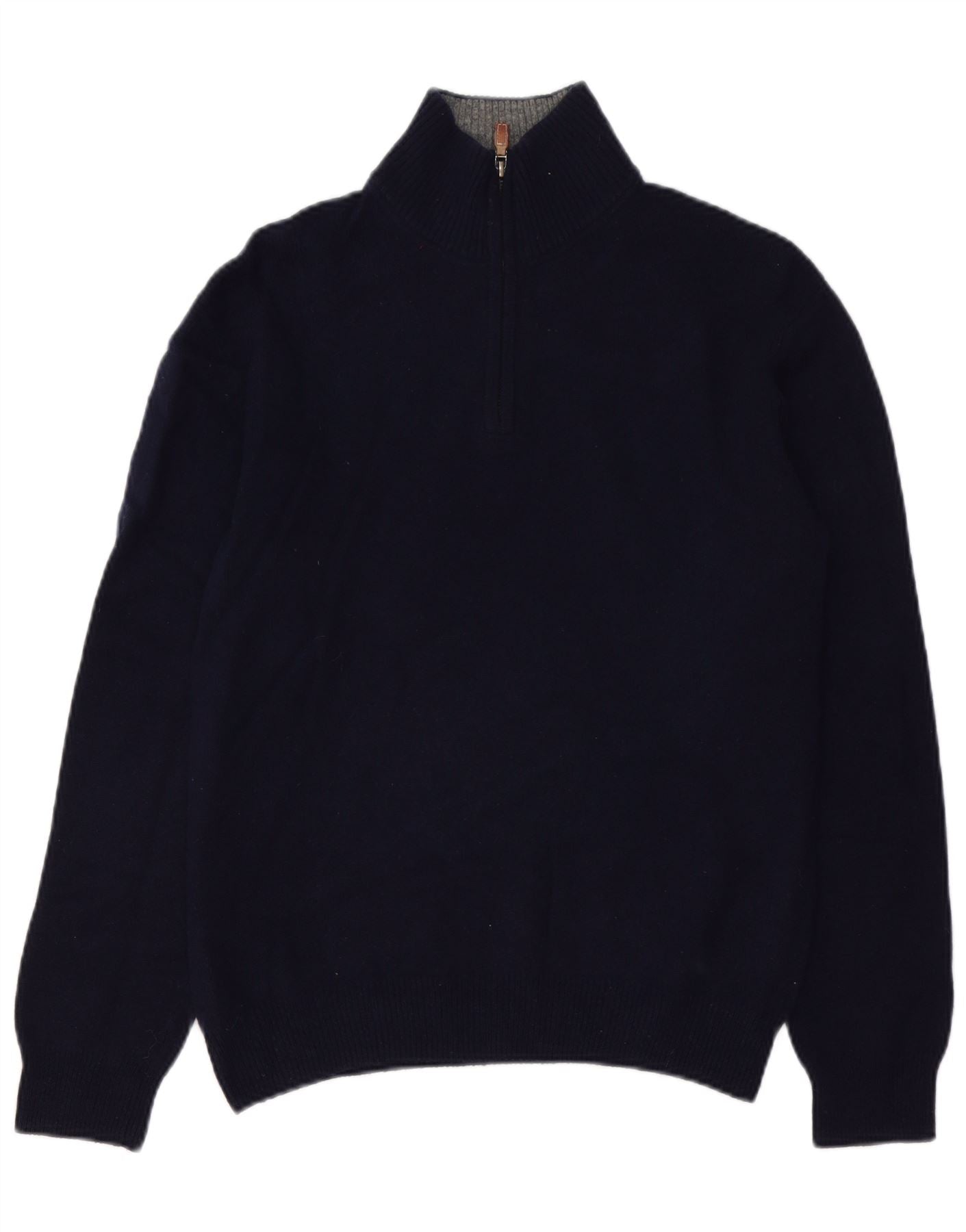 Suéter masculino HACKETT com zíper e gola em lã de carneiro azul marinho médio
