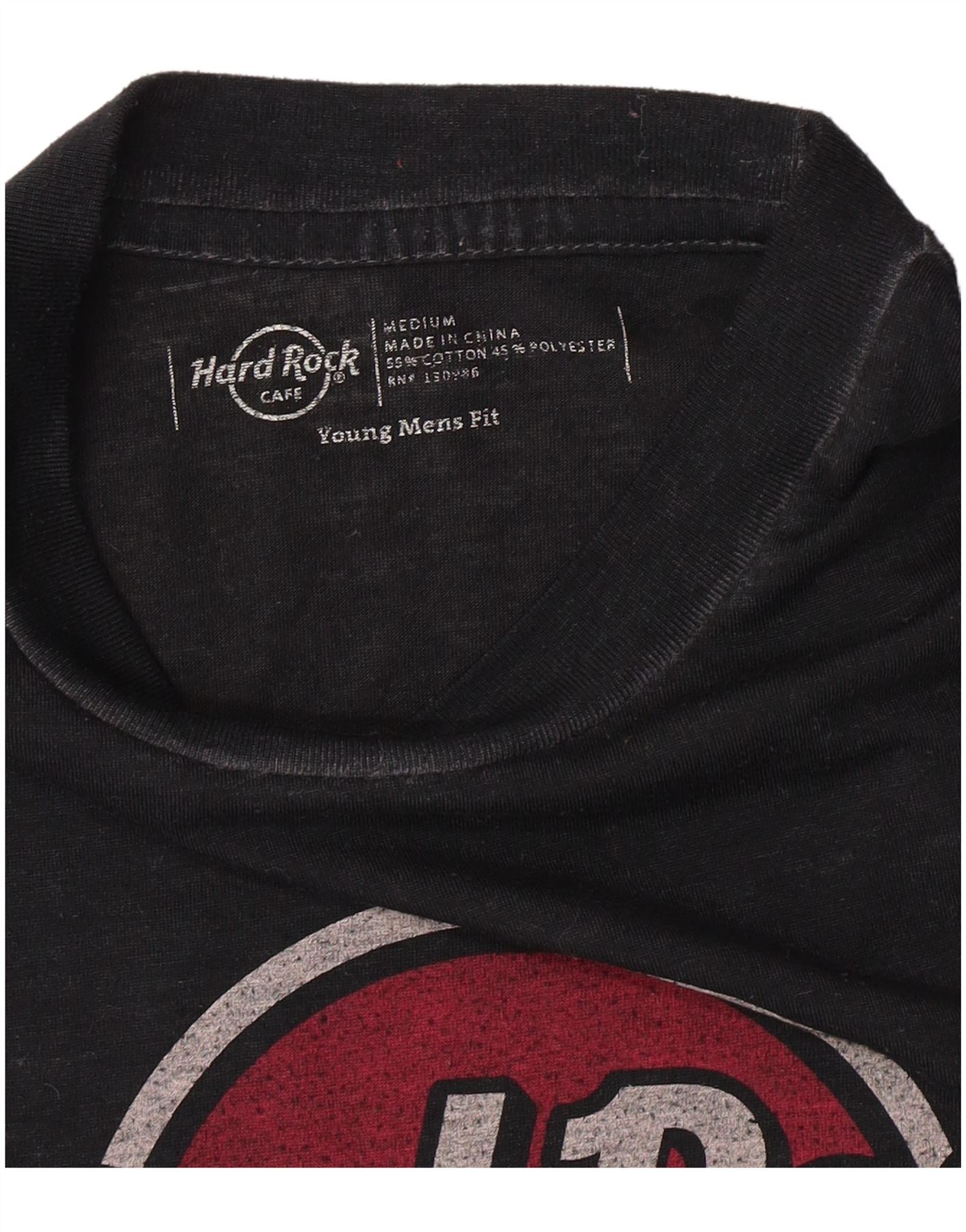 Camiseta masculina Hard Rock Cafe Amsterdam com estampa gráfica de algodão preto médio