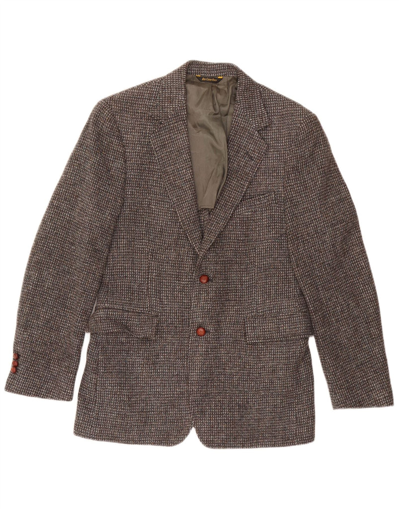 HARRIS TWEED Mens 2 Button Blazer Jacket UK 36 Small Grey Check Wool
