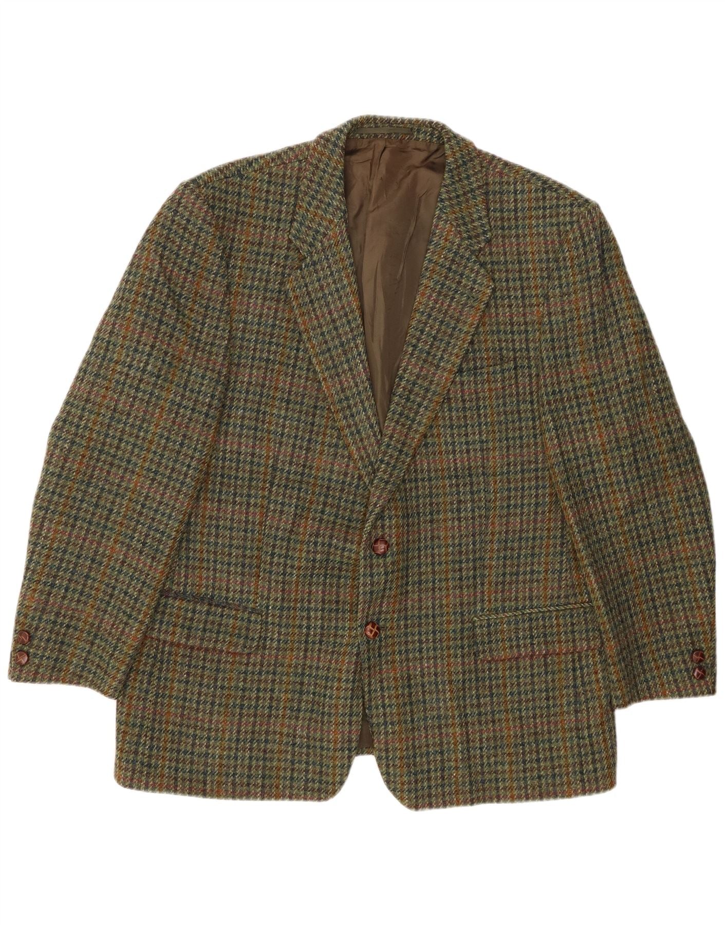 Jaqueta blazer masculina de 2 botões HARRIS TWEED Reino Unido 40 grande cáqui houndstooth