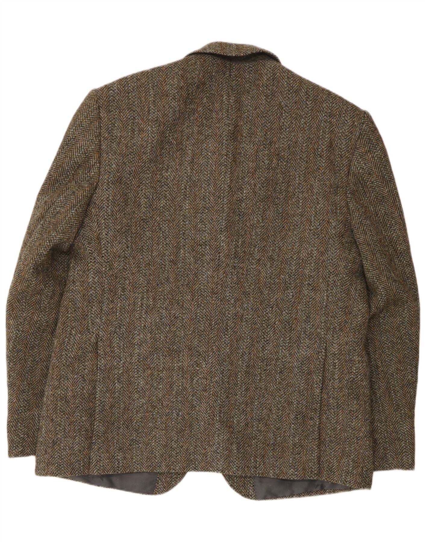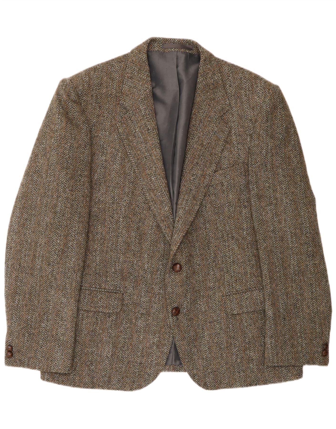 Jaqueta blazer masculina de 2 botões HARRIS TWEED Reino Unido 46 3XL lã espinha de peixe verde