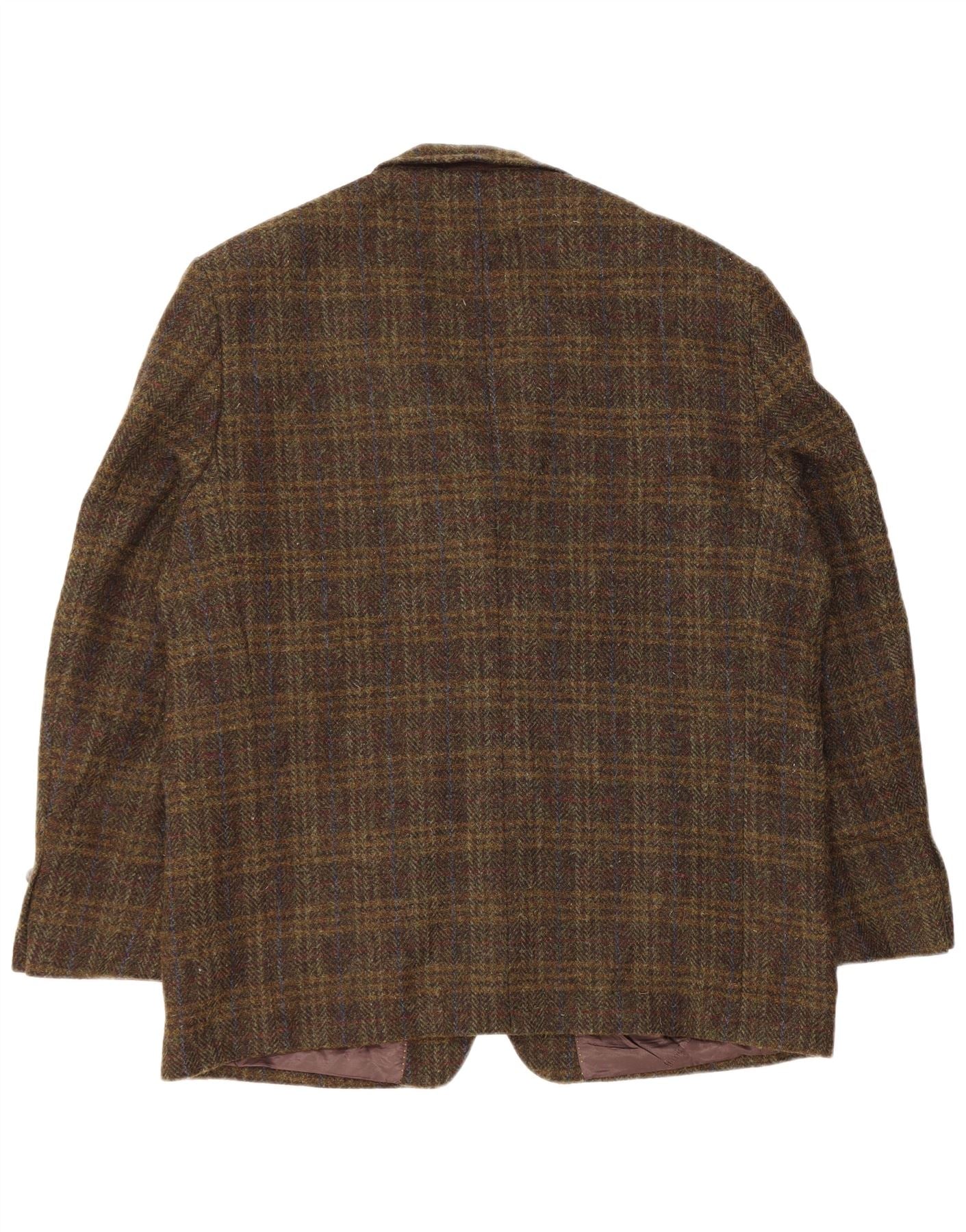 Jaqueta blazer masculina de 2 botões Harris Tweed Reino Unido 46 3XL cáqui xadrez lã virgem