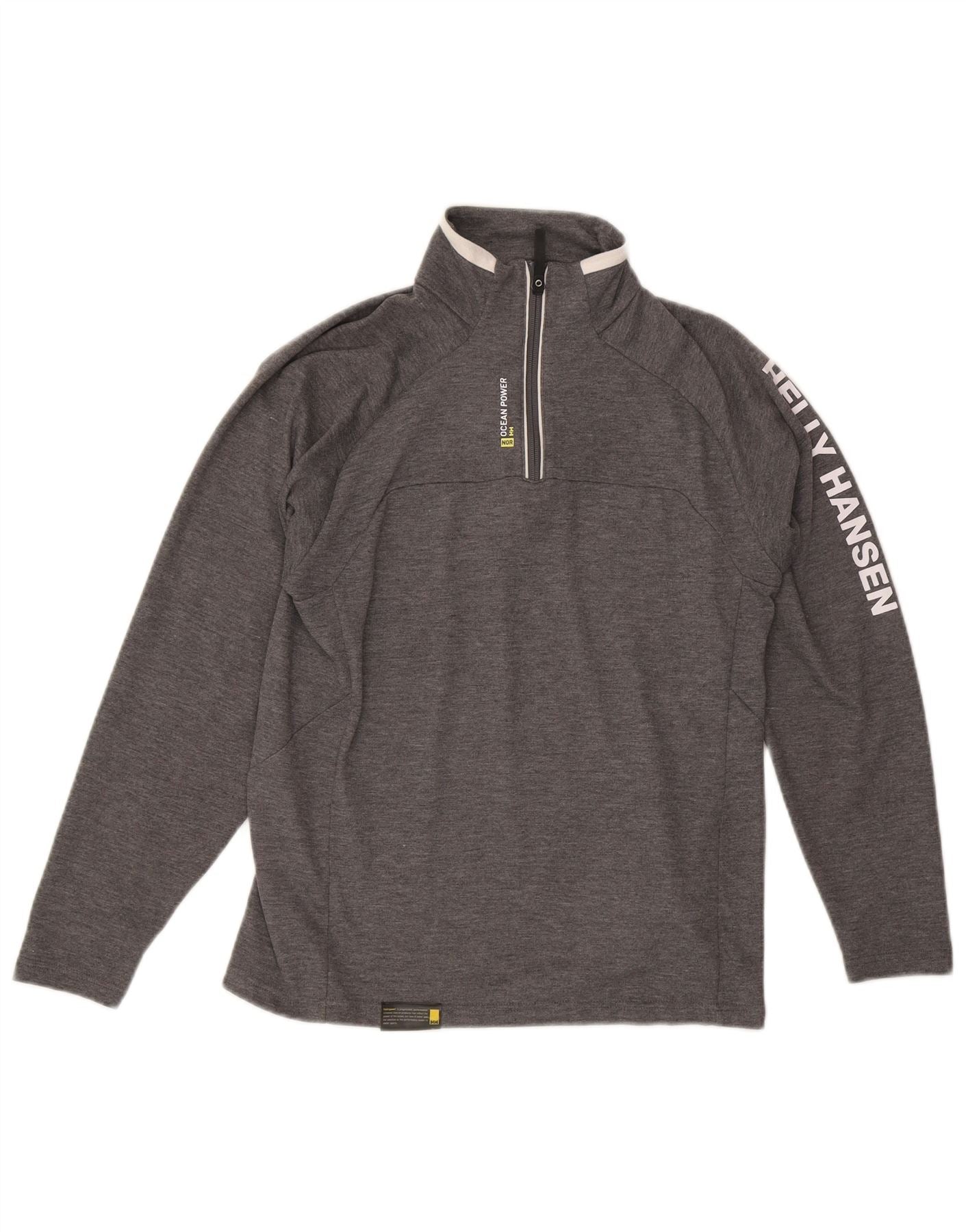 HELLY HANSEN Masculino gráfico com zíper gola pulôver agasalho pequeno cinza