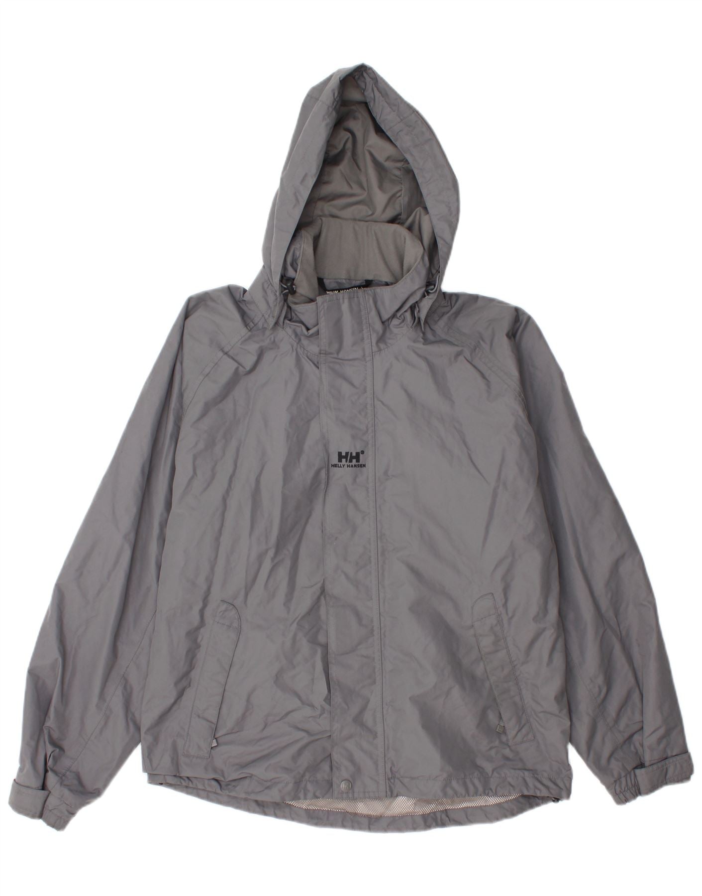 HELLY HANSEN Mens Loose Fit Hooded Rain Jacket UK 36 Small Grey Polyester