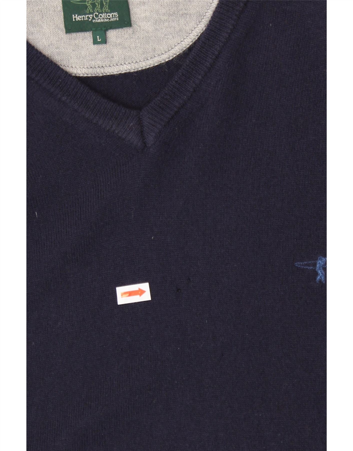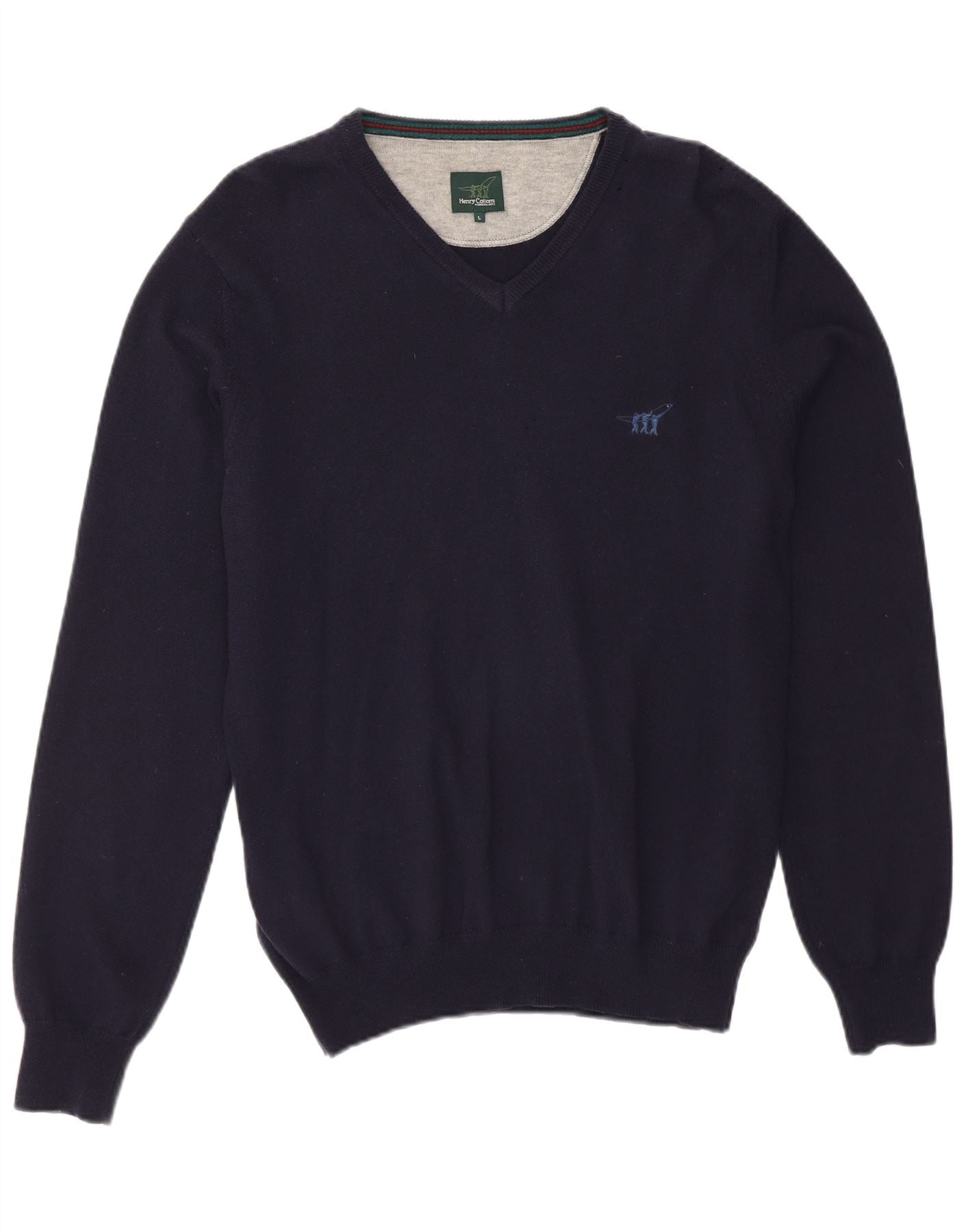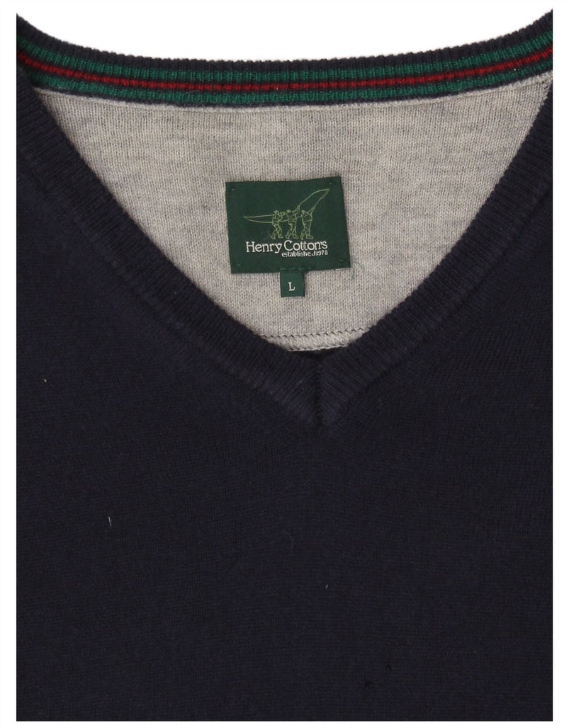 Suéter masculino HENRY COTTONS com decote em V grande azul marinho