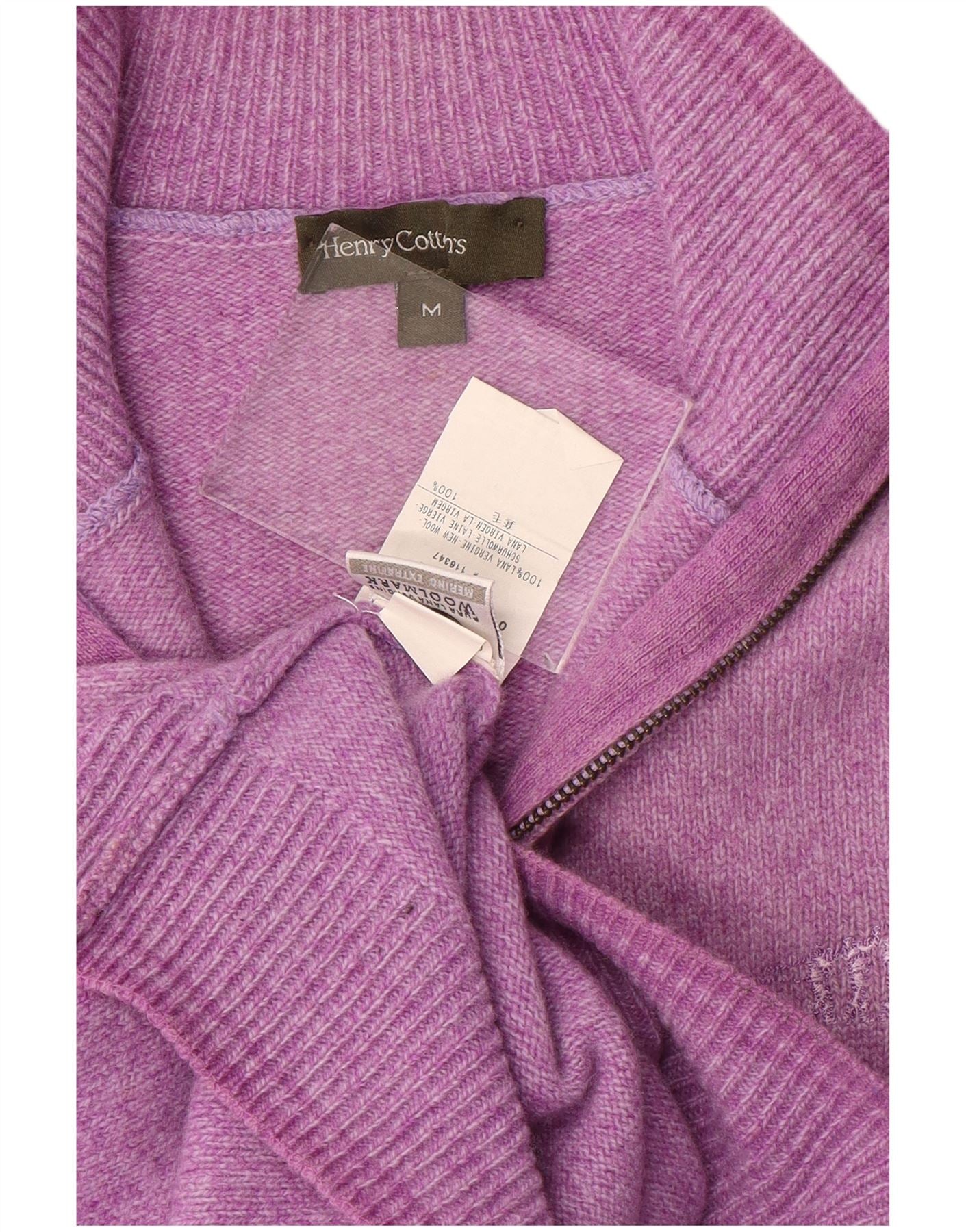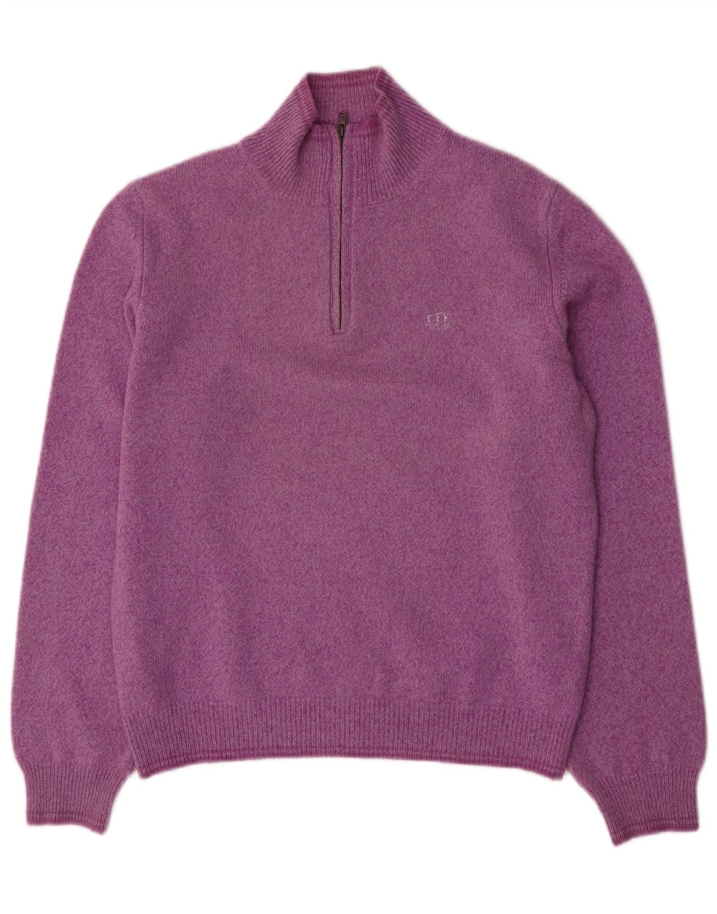 HENRY COTTONS Womens Zip Neck Jumper Sweater UK 14 Medium Purple Flecked
