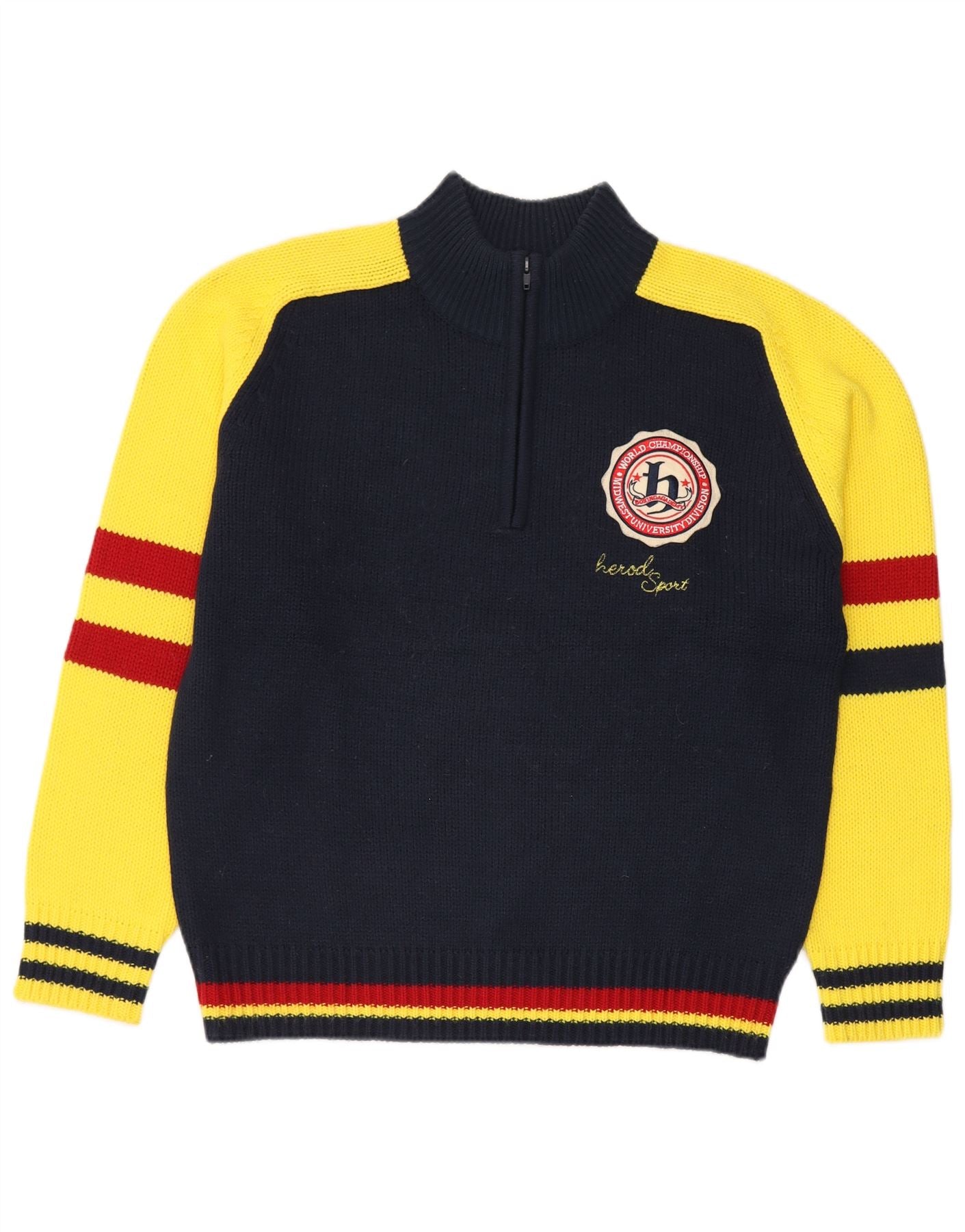 Suéter feminino HEROD SPORT com zíper e gola em bloco colorido azul marinho UK 18 XL