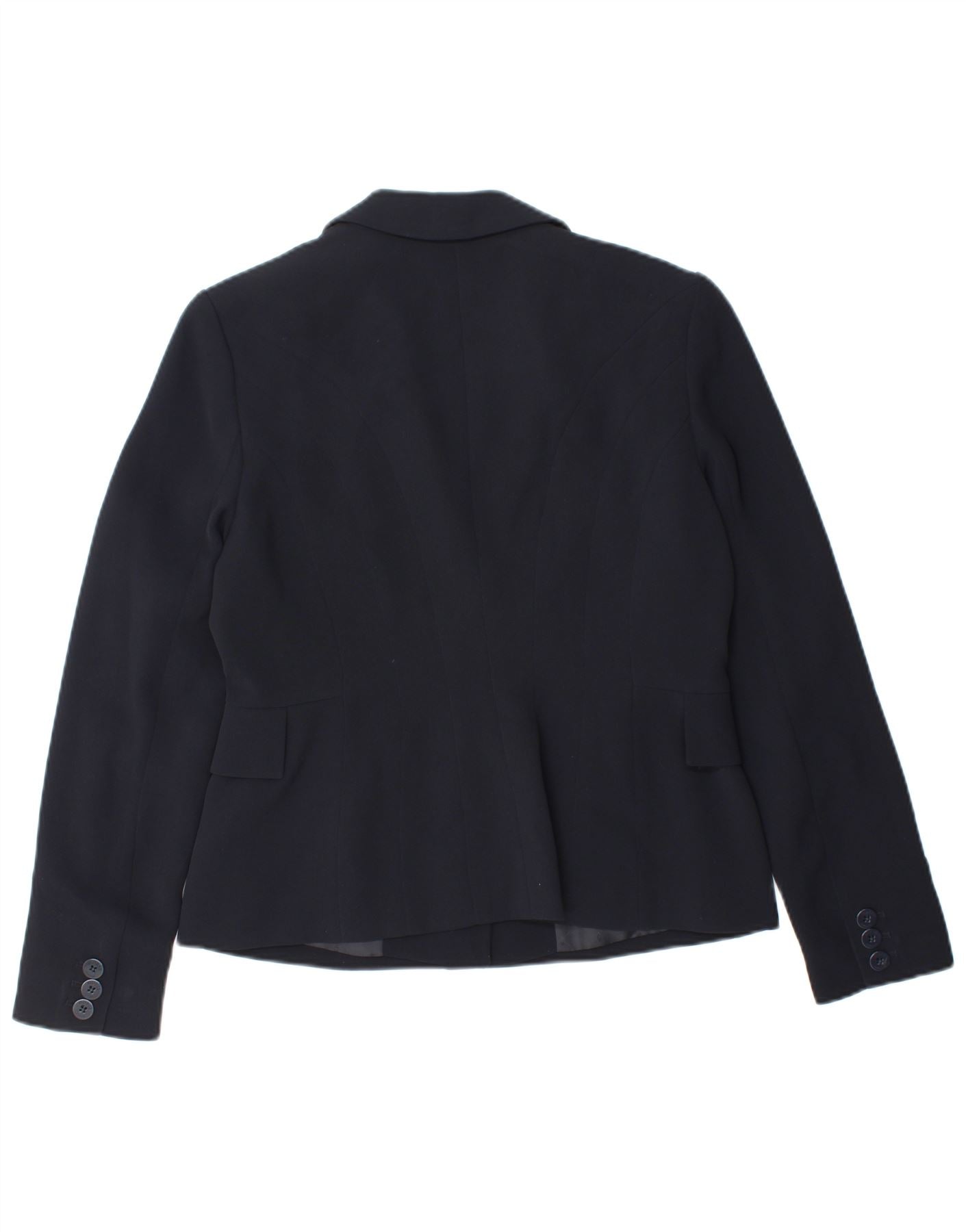 Jaqueta blazer feminina de 2 botões HOBBS Reino Unido 12 poliéster azul marinho médio