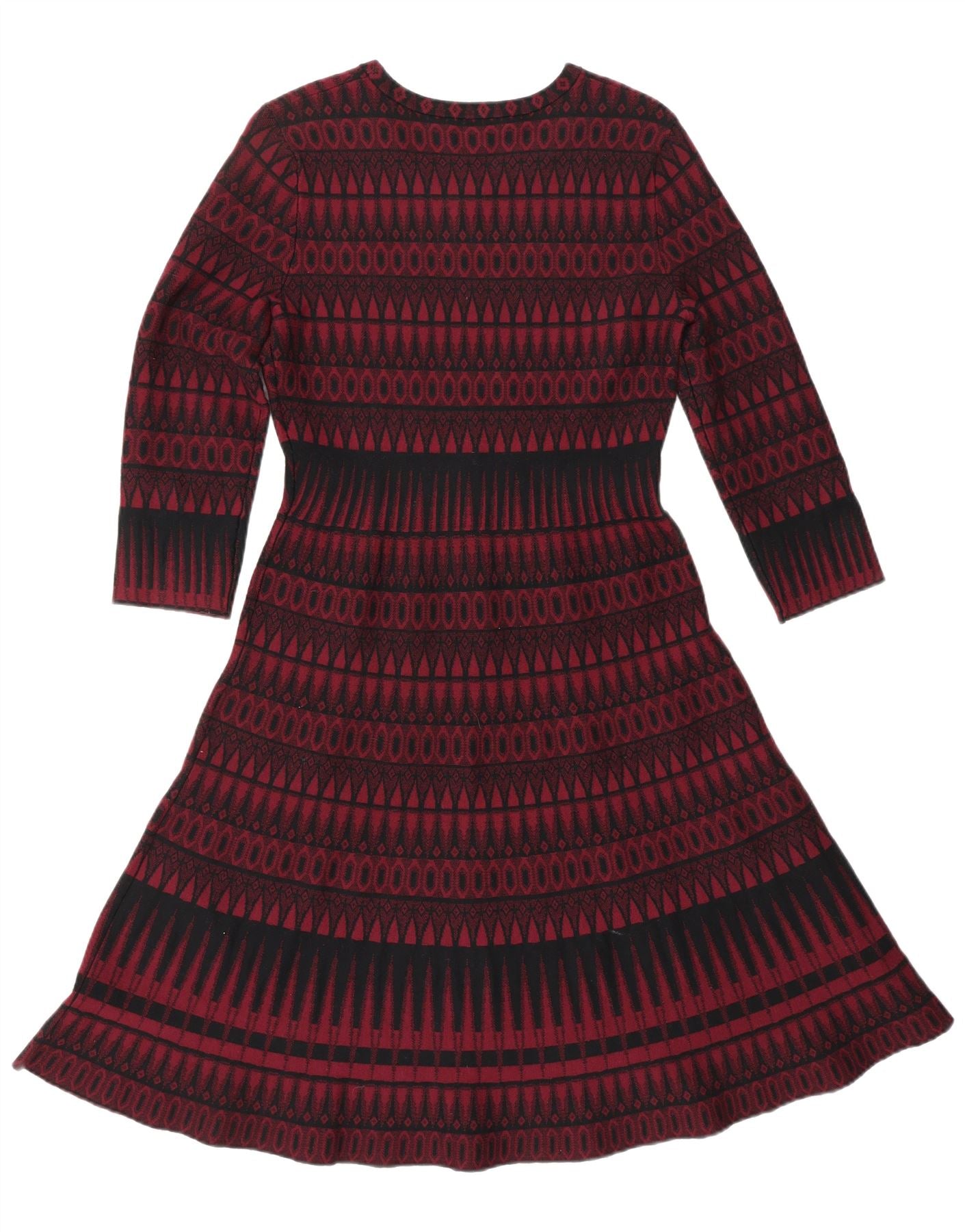 HOBBS Vestido feminino manga 3/4 Reino Unido 10 viscose geométrica vermelha pequena