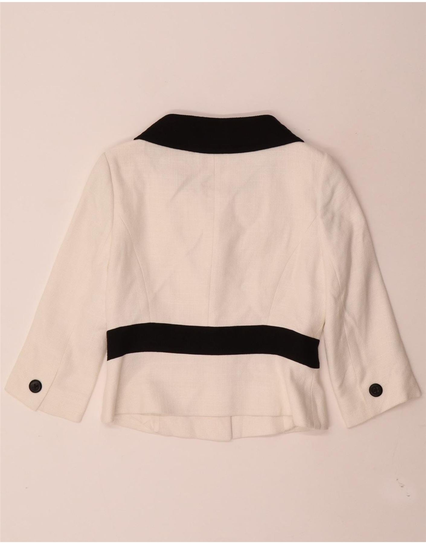 Jaqueta blazer feminina Hobbs Crop 2 botões Reino Unido 10 pequeno bloco colorido branco