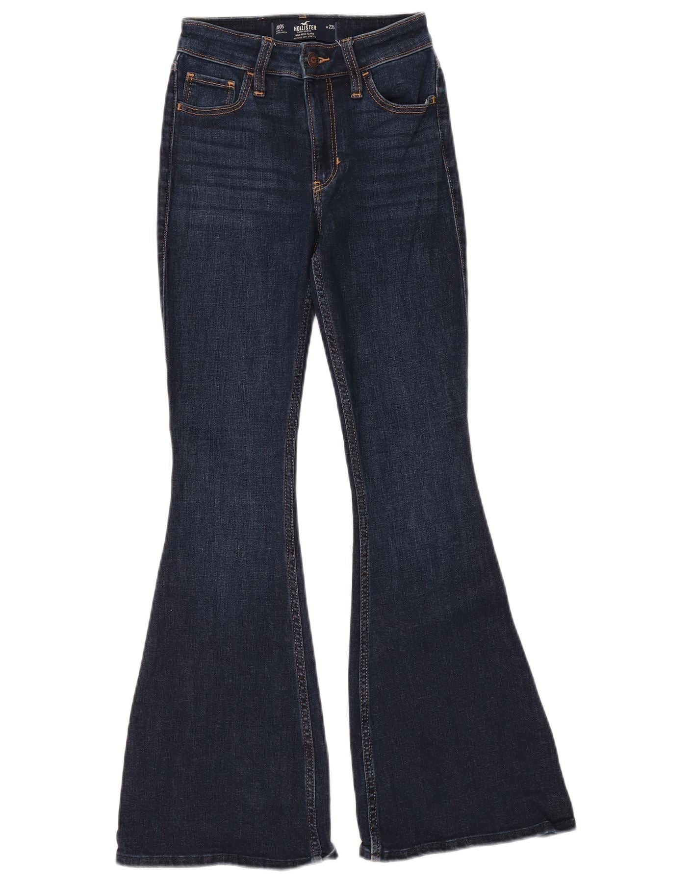 HOLLISTER Calça jeans feminina cintura alta larga W23 L30 algodão azul marinho