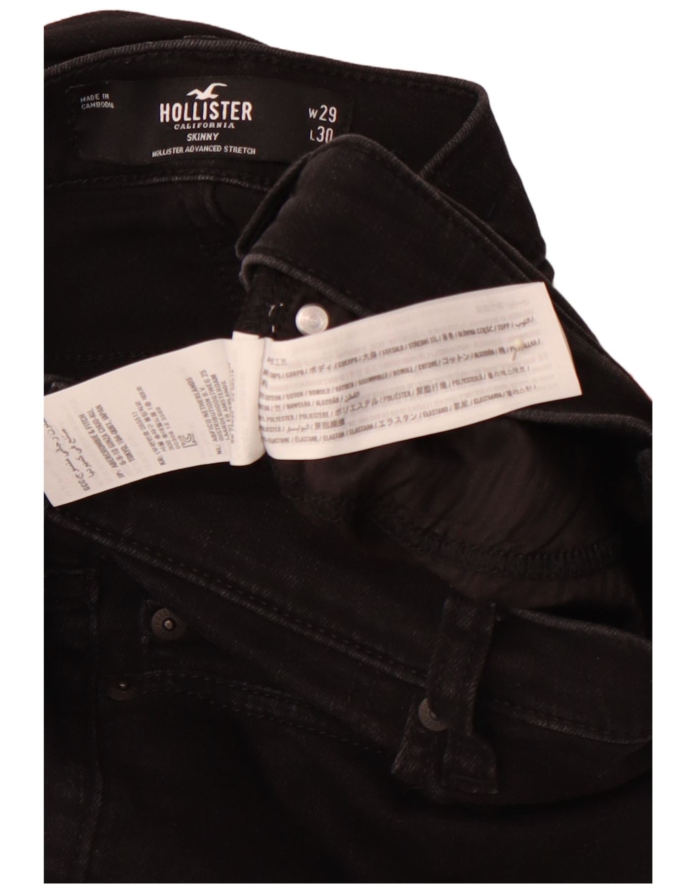 Calça jeans skinny masculina HOLLISTER W29 L30 algodão preto