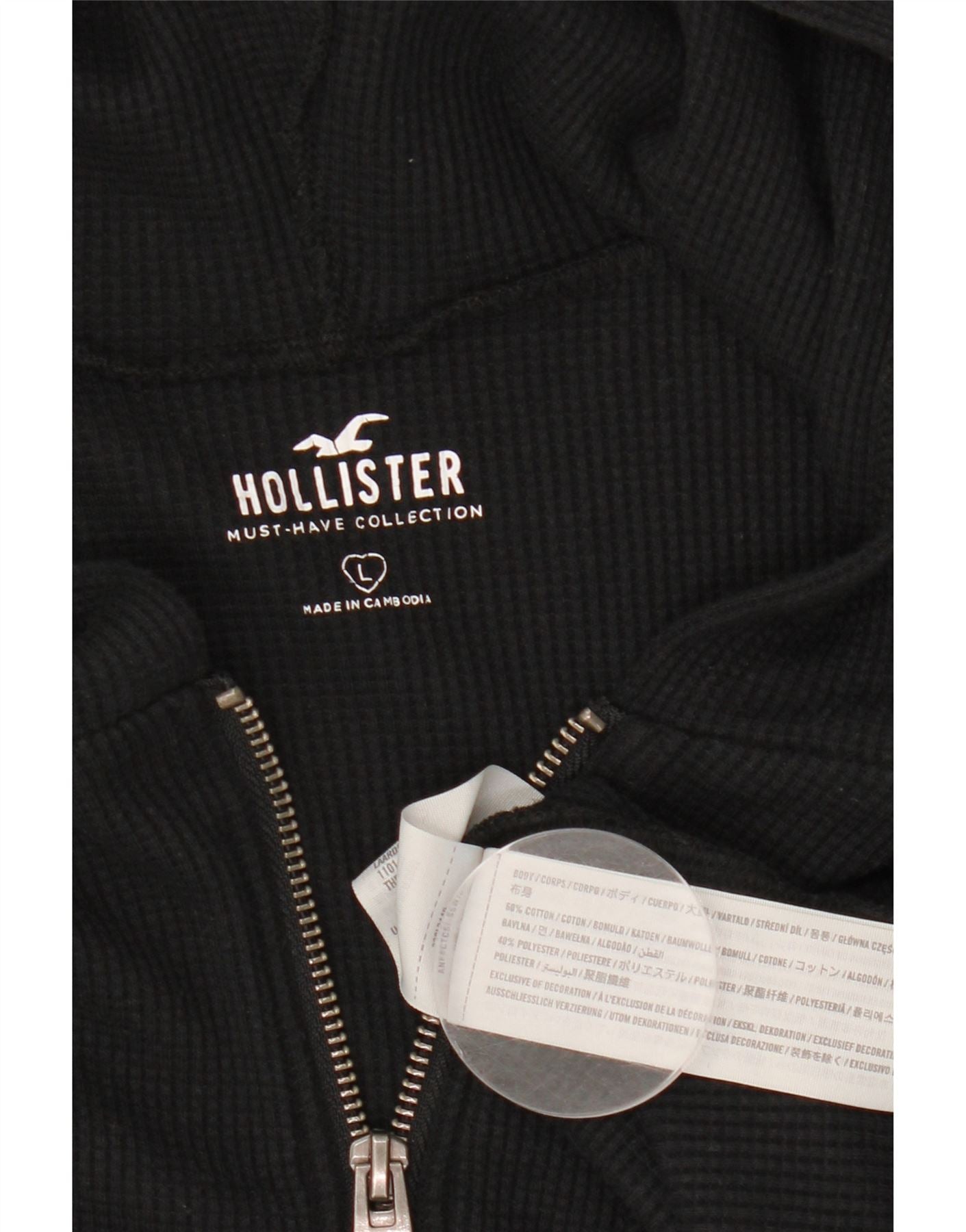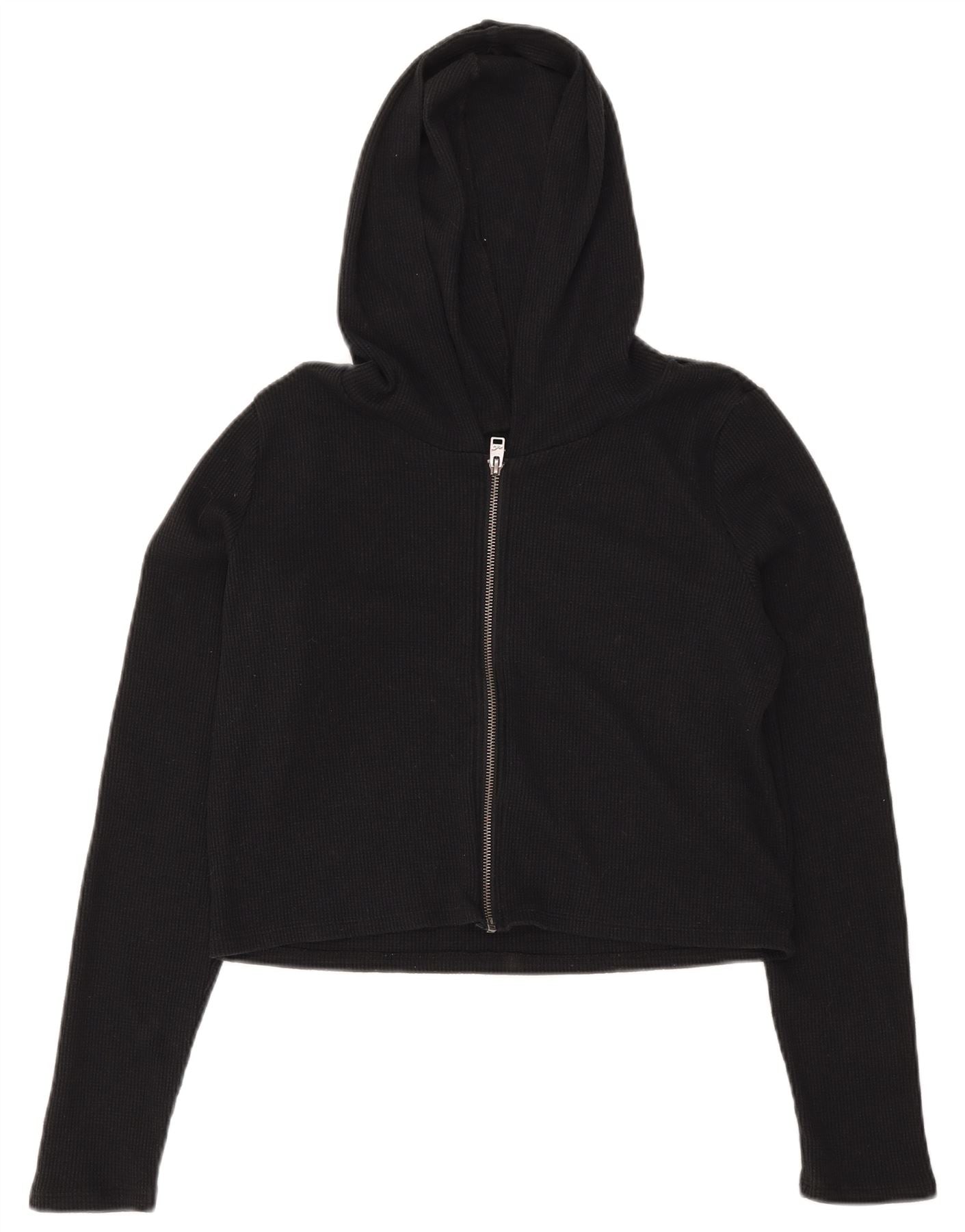 HOLLISTER Womens Crop Zip Hoodie Sweater UK 16 Large Black Cotton