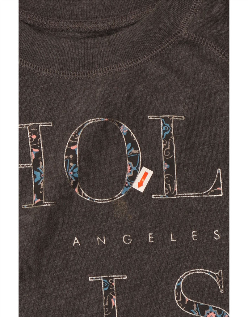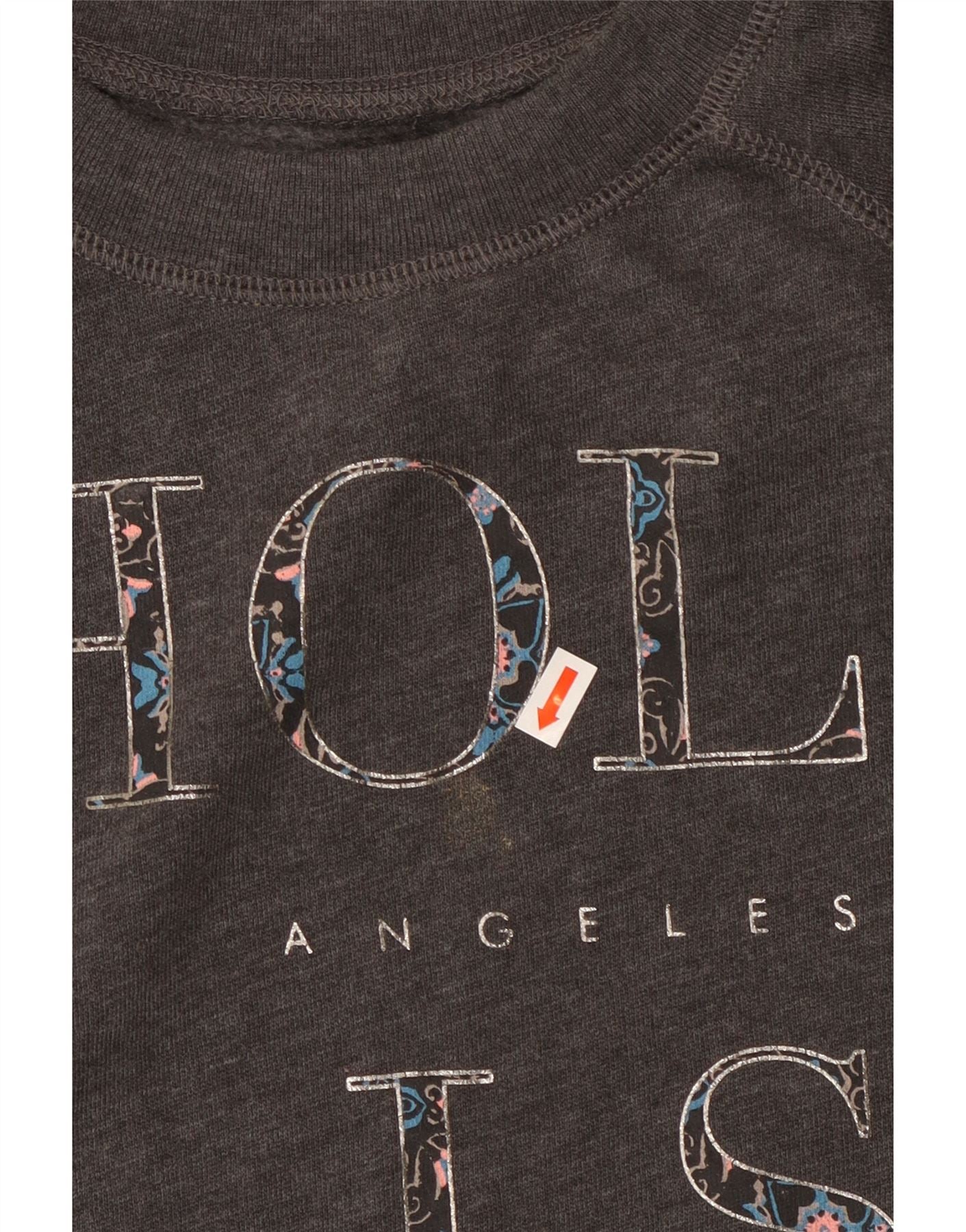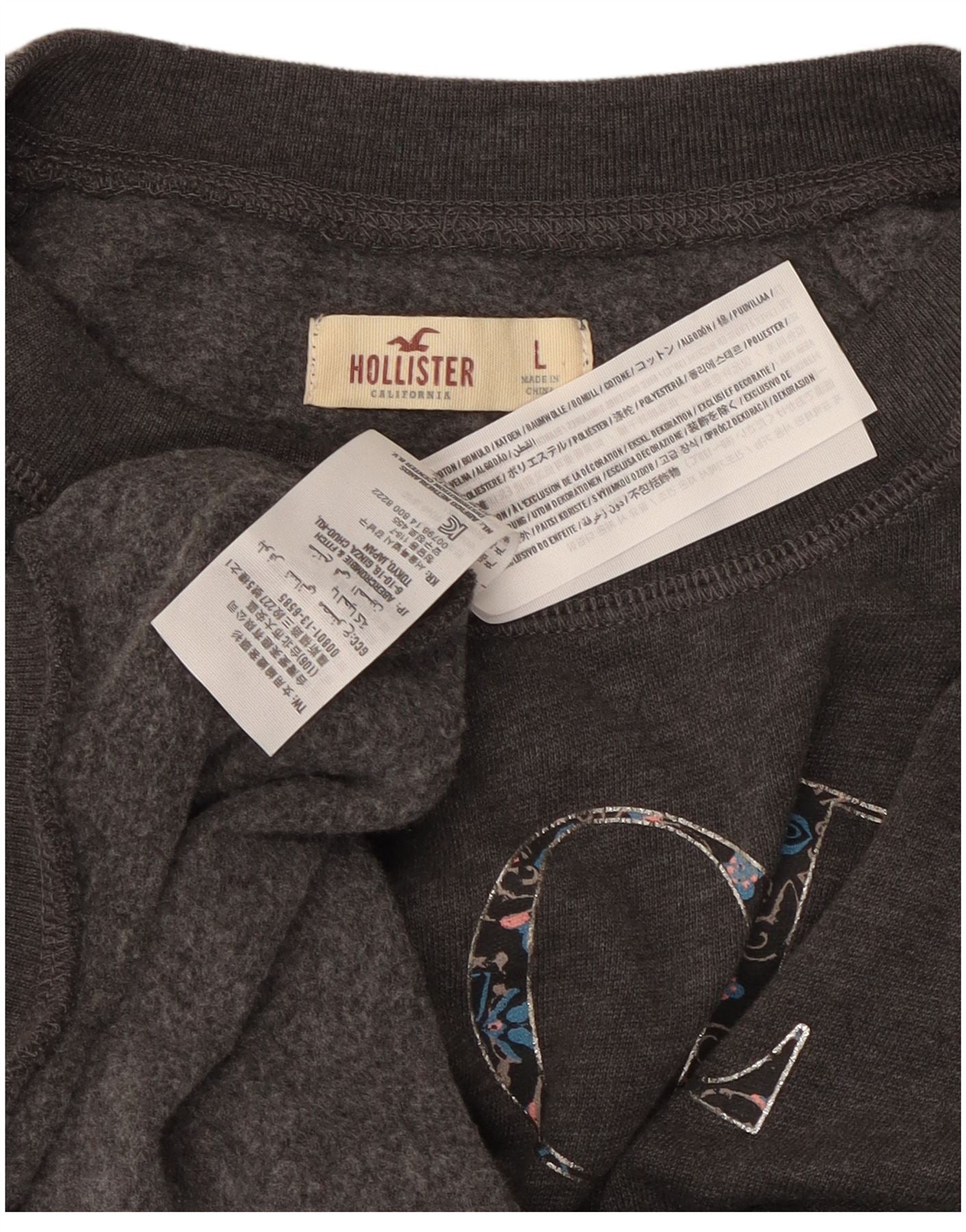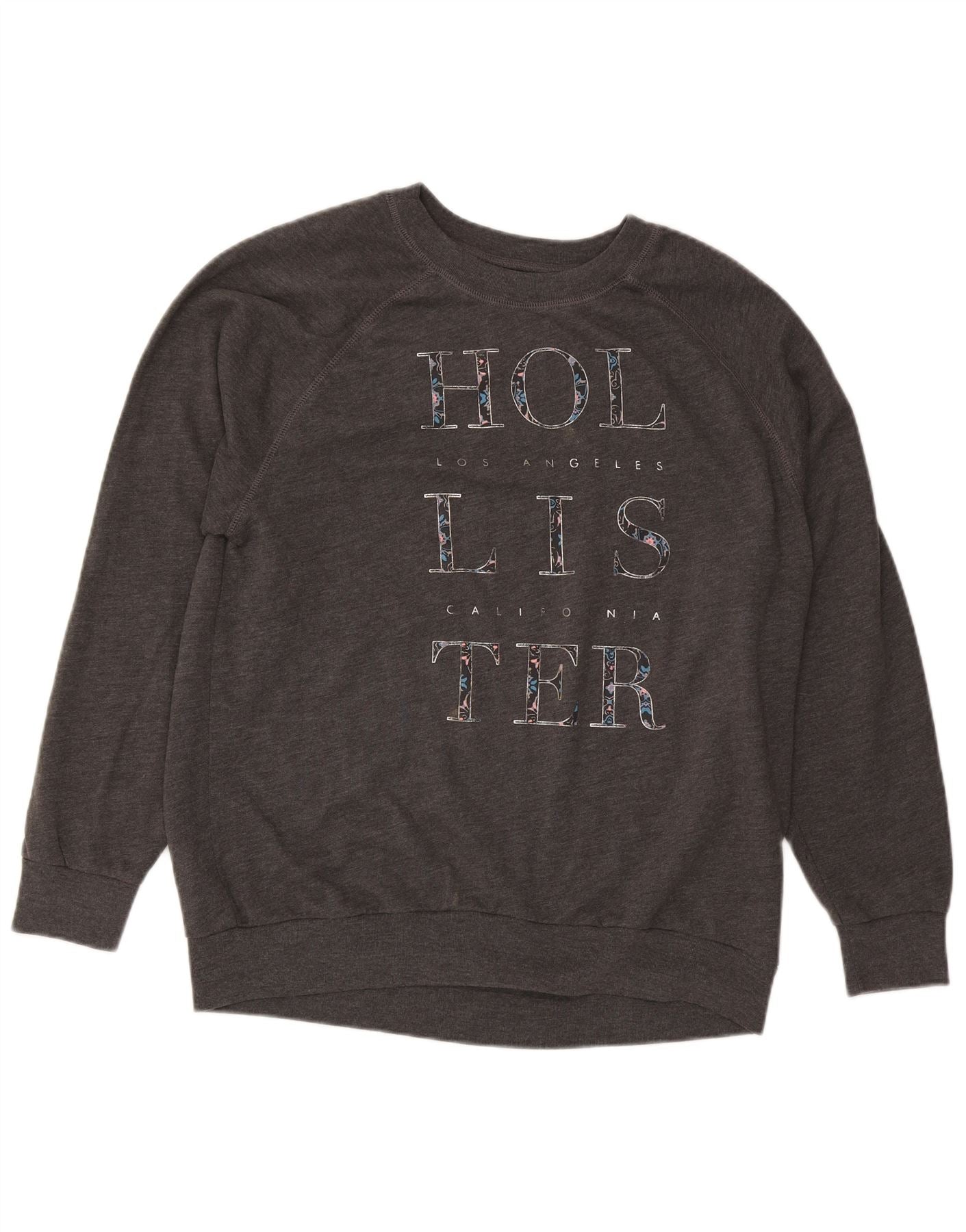 HOLLISTER Womens Graphic Sweatshirt Jumper UK 16 Large Grey Floral Cotton