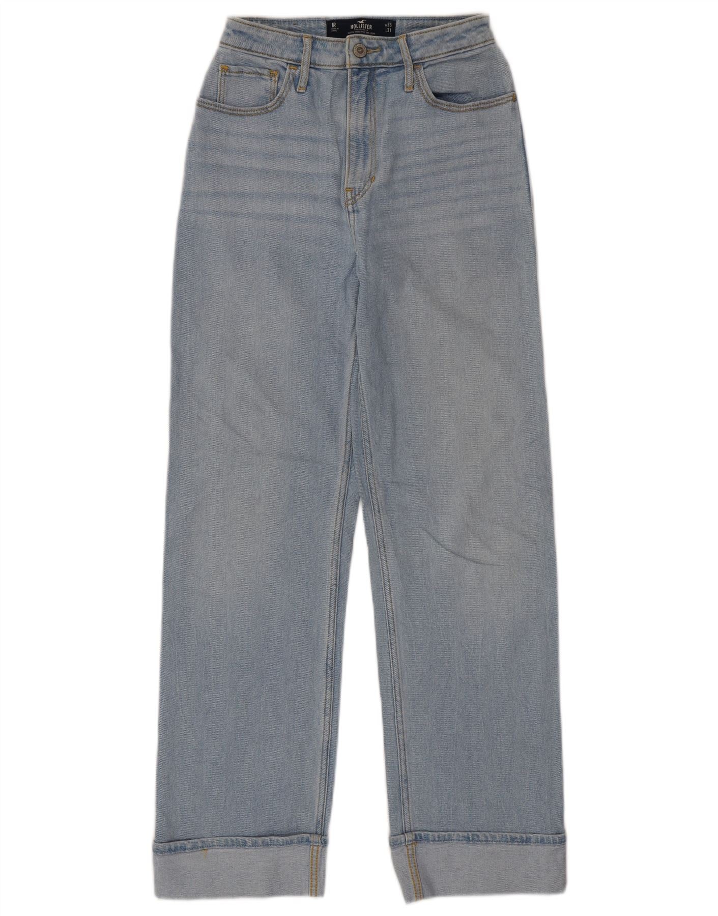 HOLLISTER Calça jeans reta feminina de cintura alta W25 L31 algodão azul