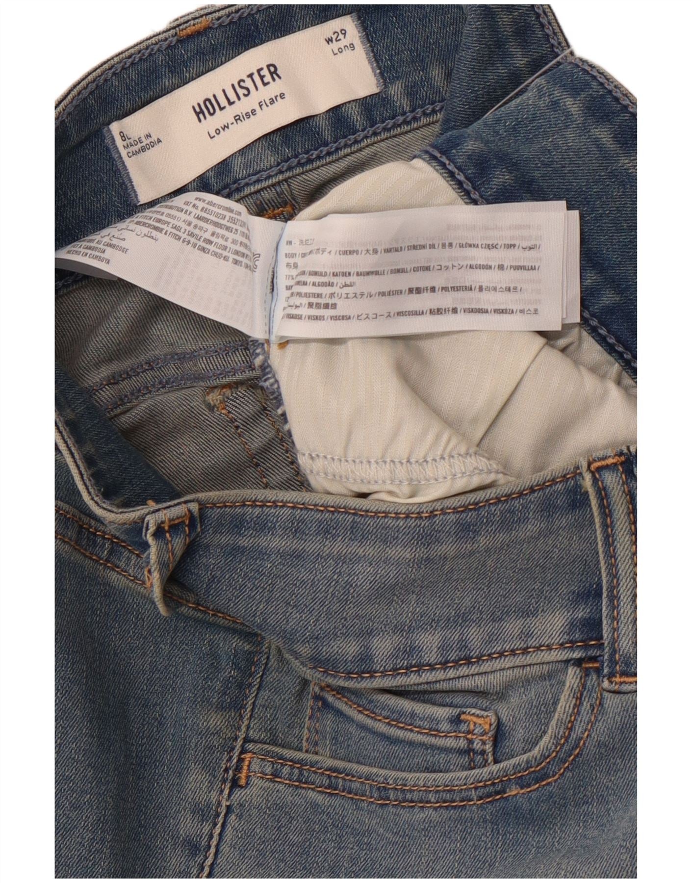 Calça jeans feminina HOLLISTER cintura baixa longa US 8 médio W29 L34 azul
