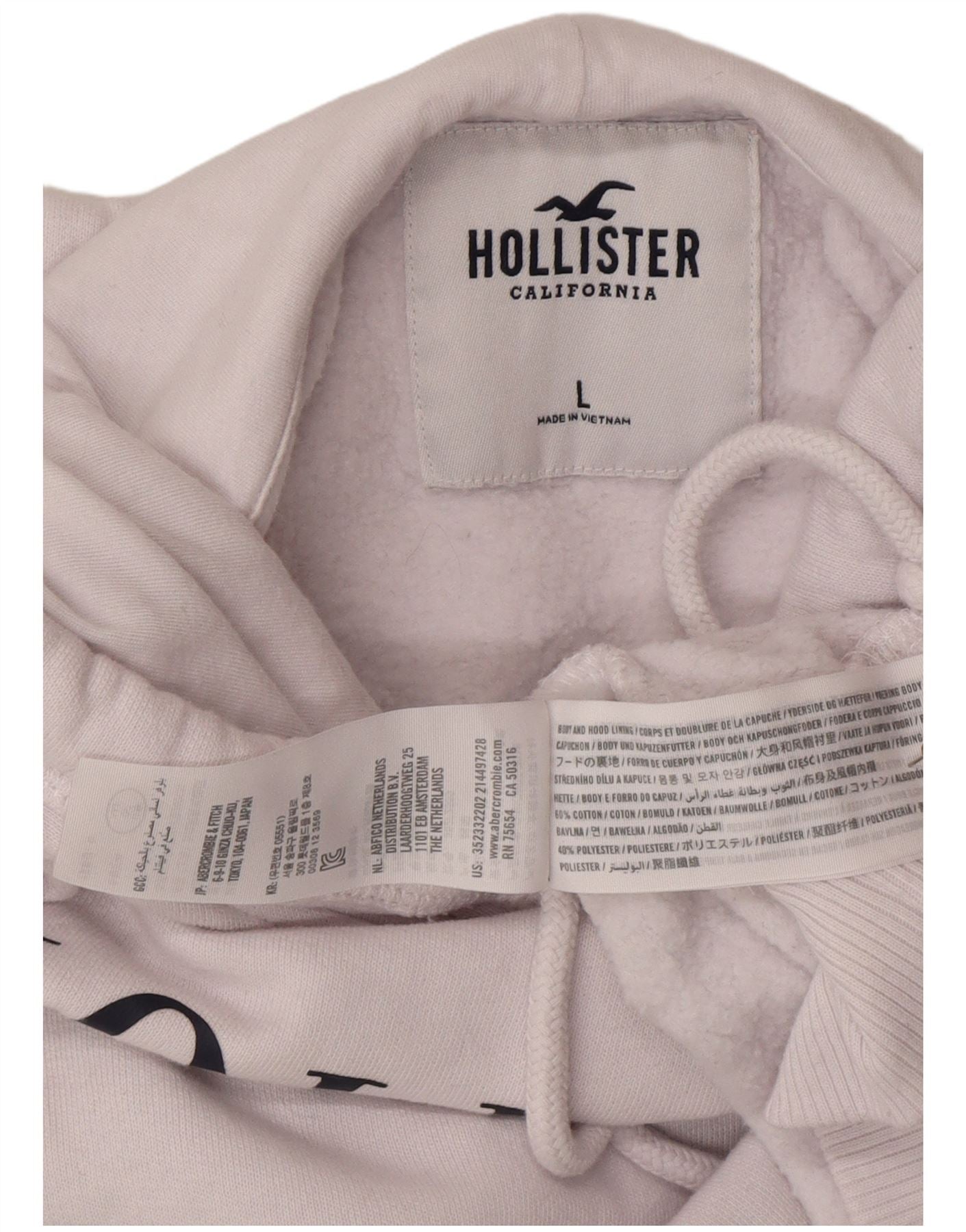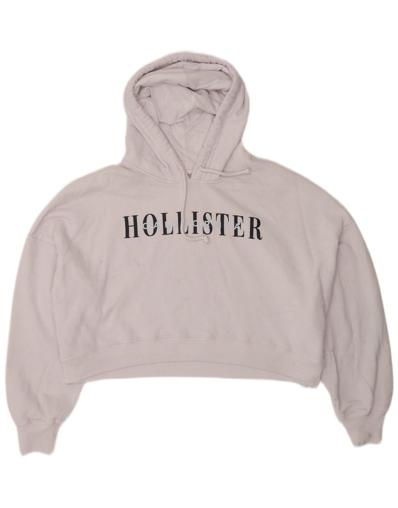 HOLLISTER Womens Oversized Crop Graphic Hoodie Jumper UK 16 Large White