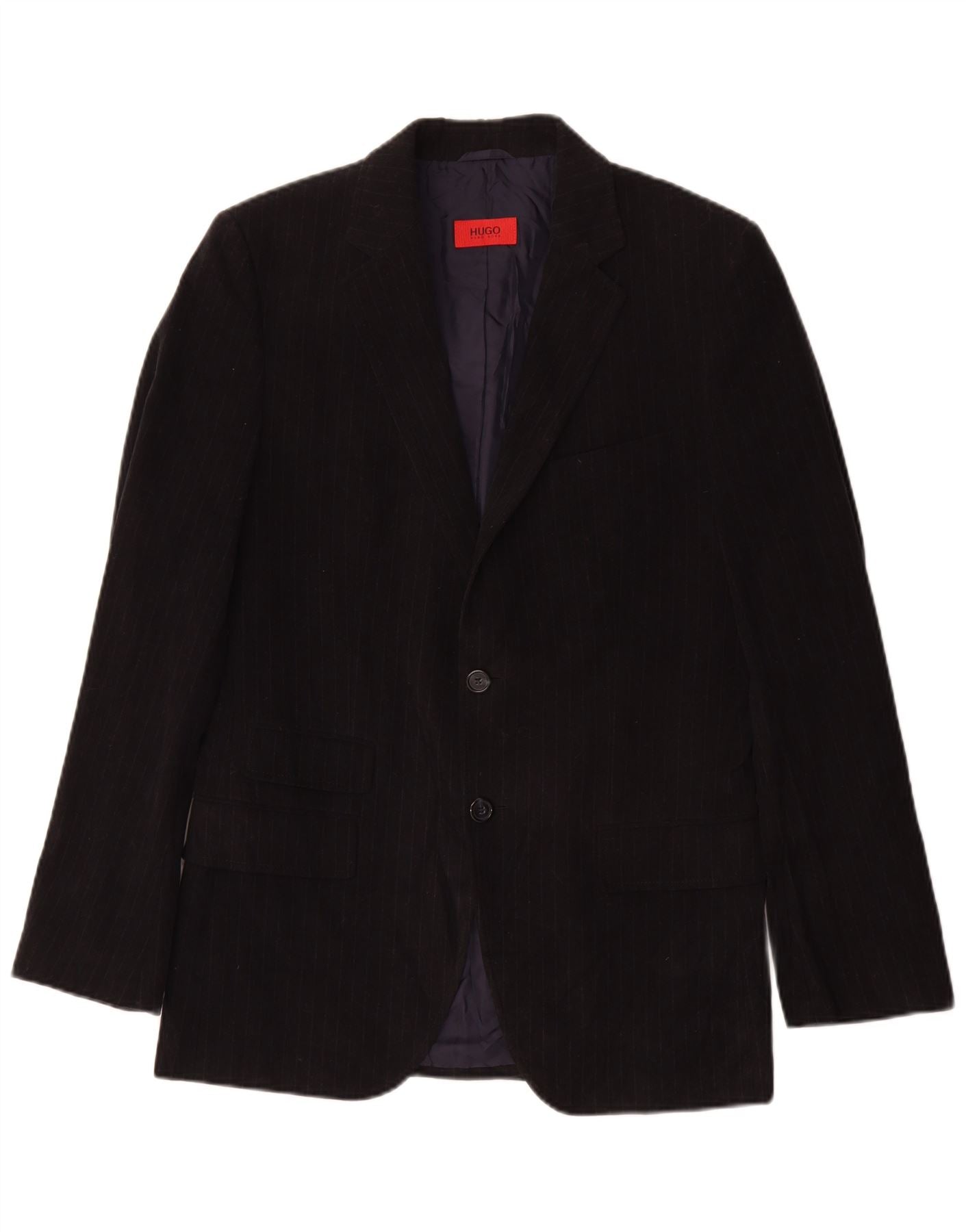 Jaqueta blazer masculina de 2 botões HUGO BOSS UE 50 grande algodão listrado preto