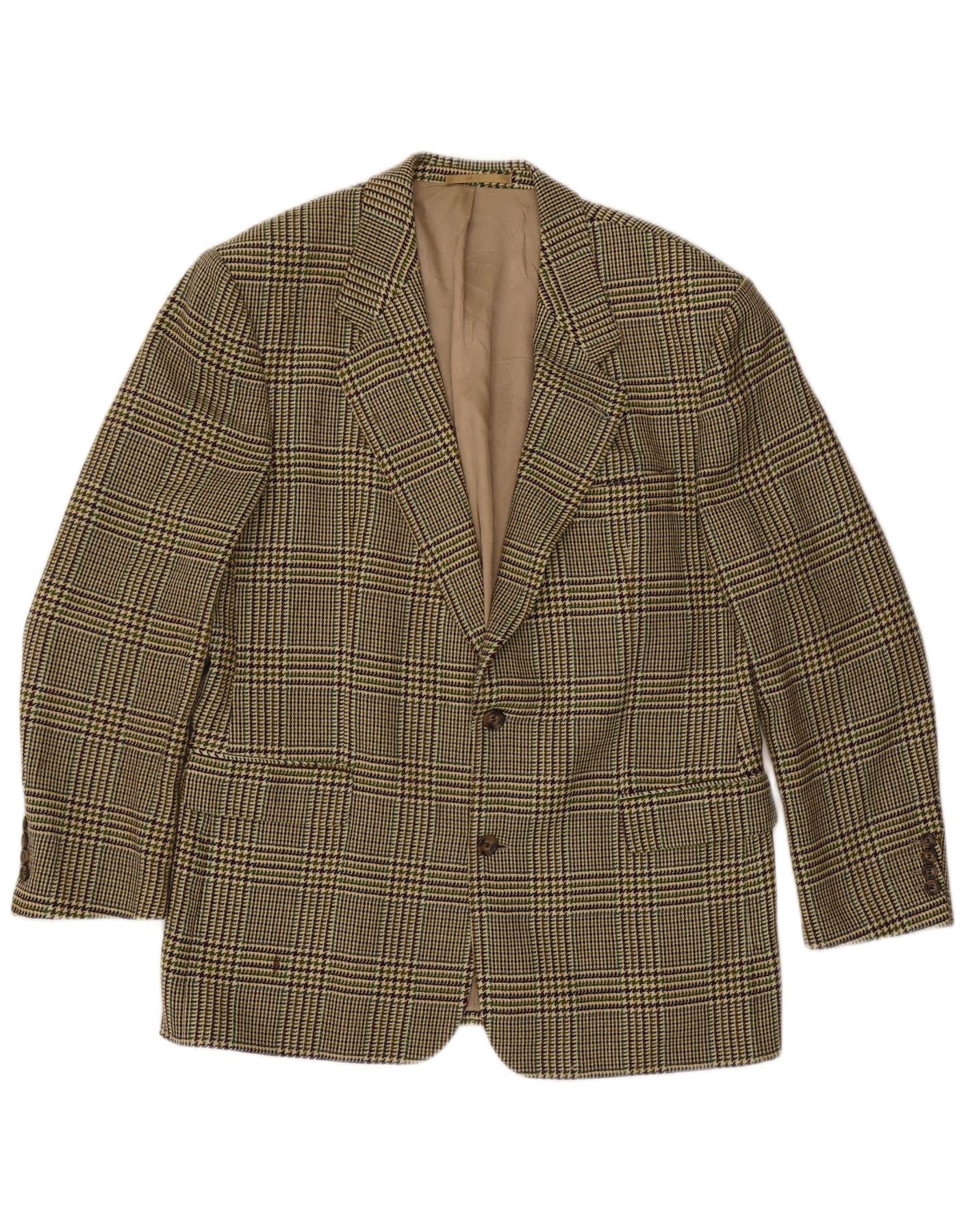 HUGO BOSS Mens 2 Button Blazer Jacket EU 54 2XL Green Houndstooth Wool