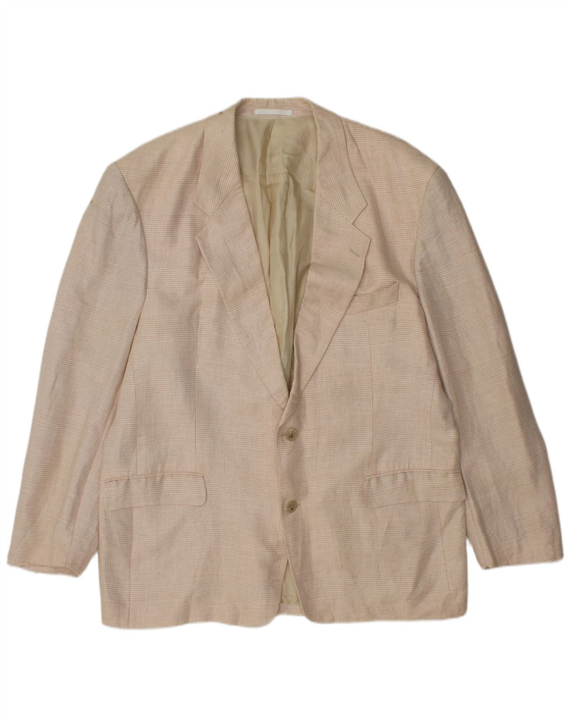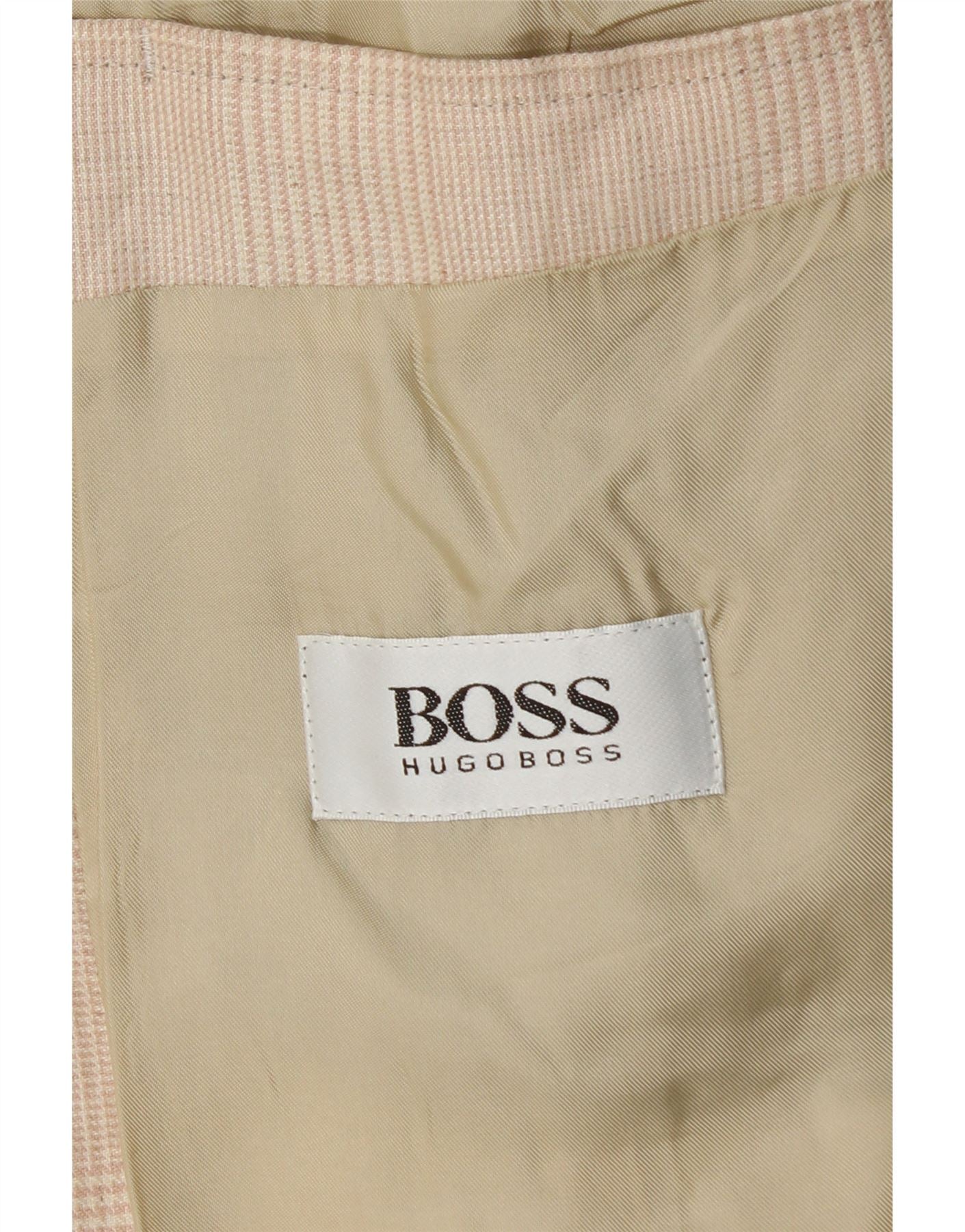 Jaqueta blazer masculina de 2 botões HUGO BOSS UE 56 3XL linho xadrez bege