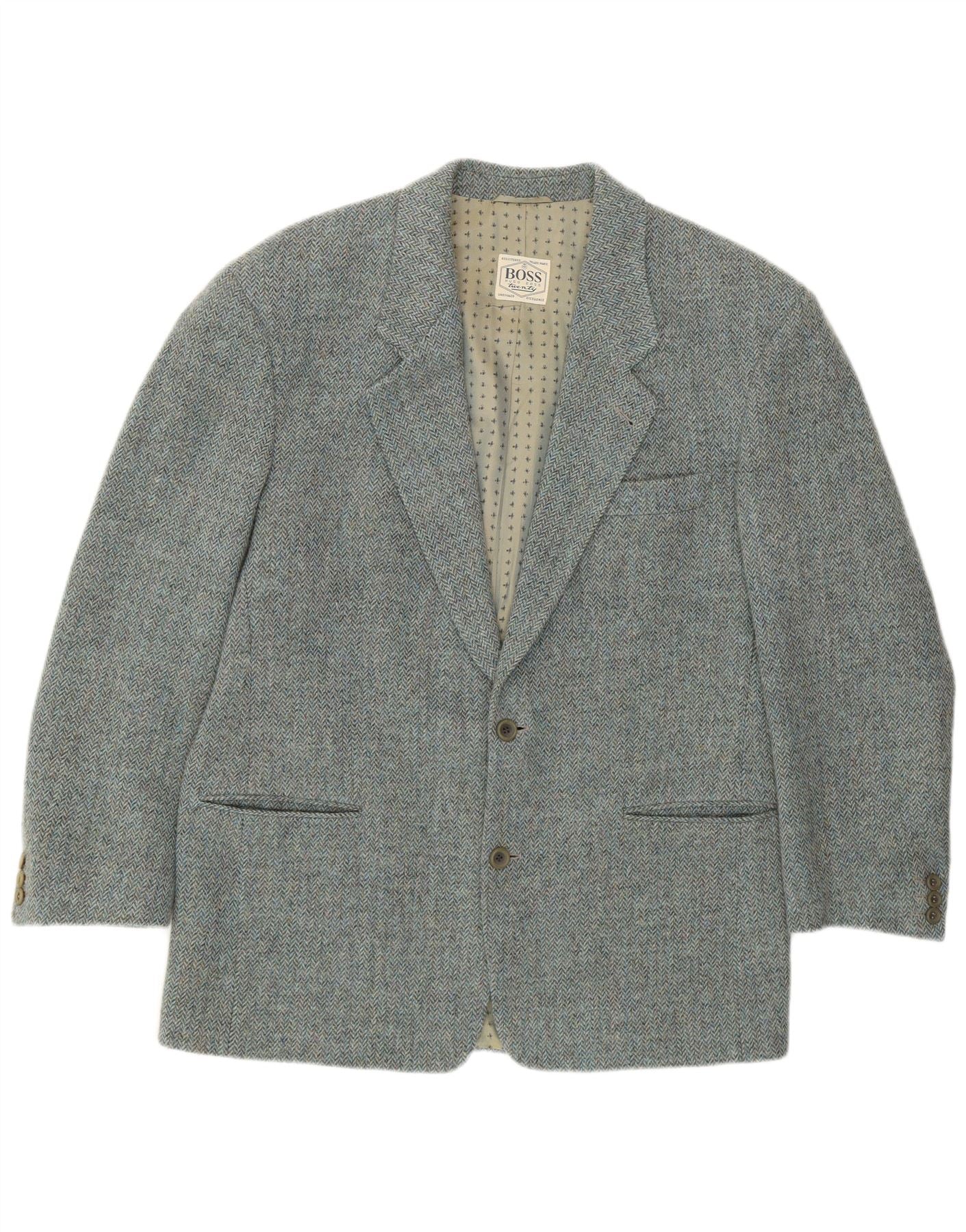 Jaqueta blazer masculina de 2 botões HUGO BOSS IT 52 XL azul espinha de peixe nova lã
