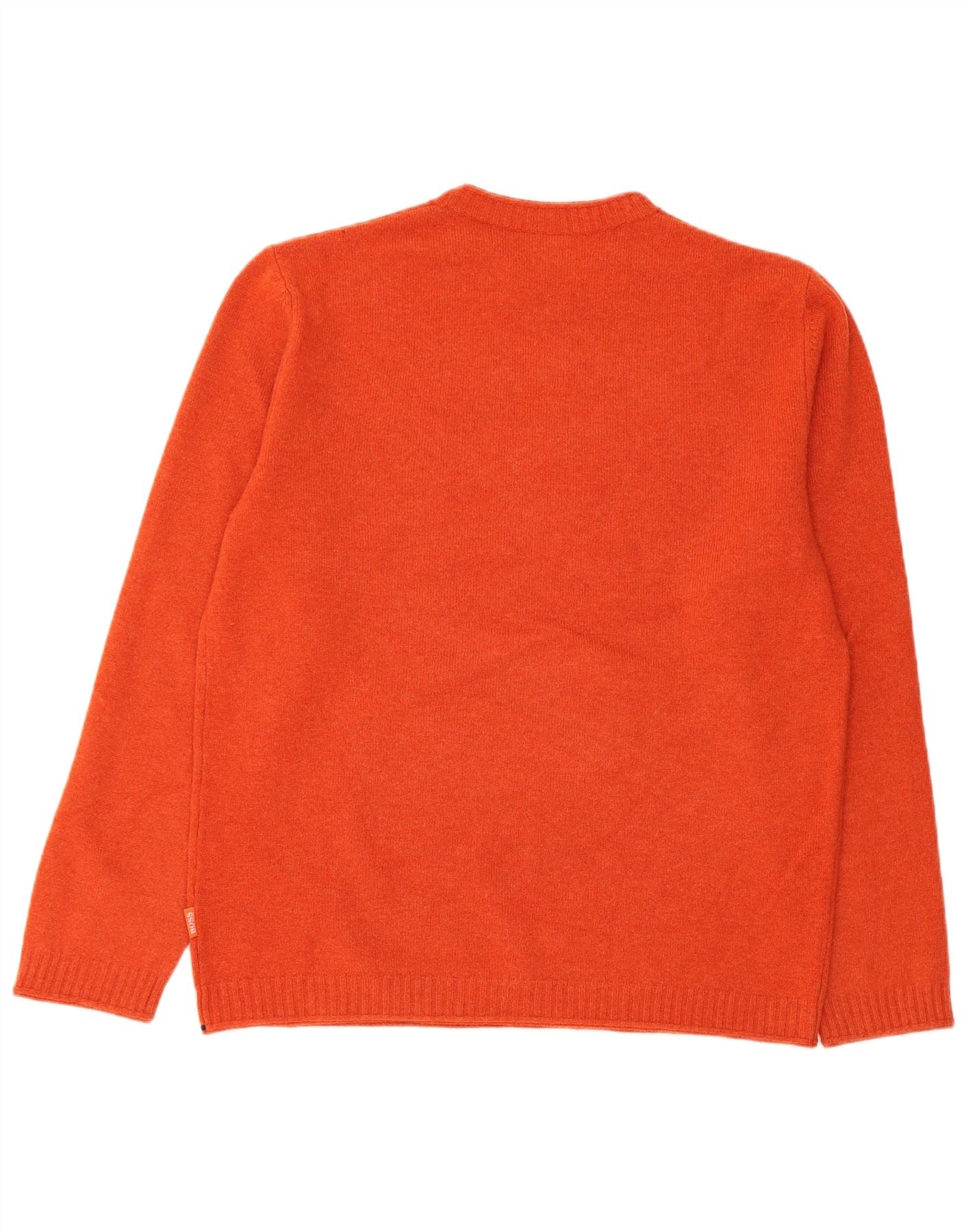 Suéter masculino HUGO BOSS com gola redonda e lã virgem média laranja