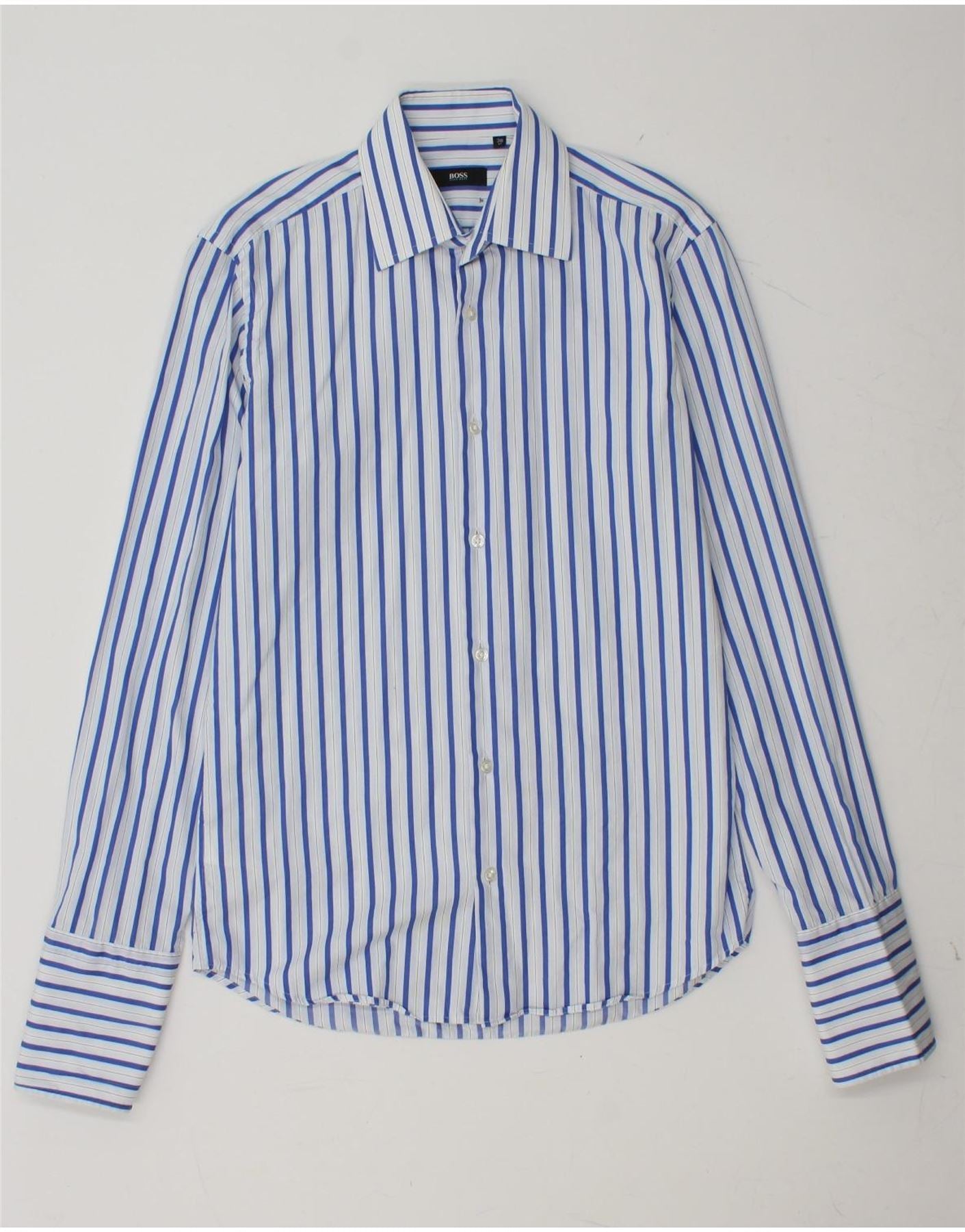 Camisa formal masculina HUGO BOSS tamanho 38 15 algodão listrado azul médio
