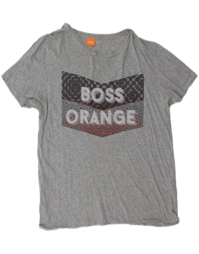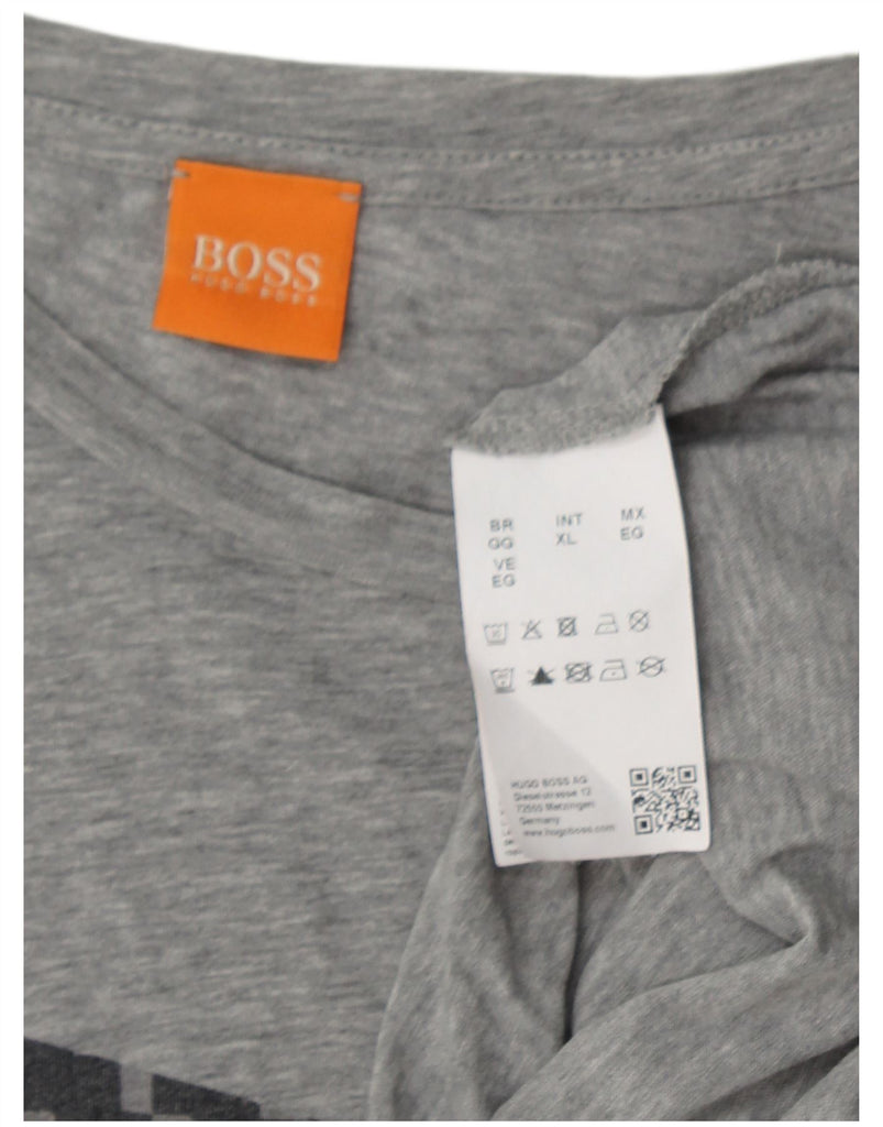 Camiseta gráfica masculina HUGO BOSS Top XL algodão manchado cinza