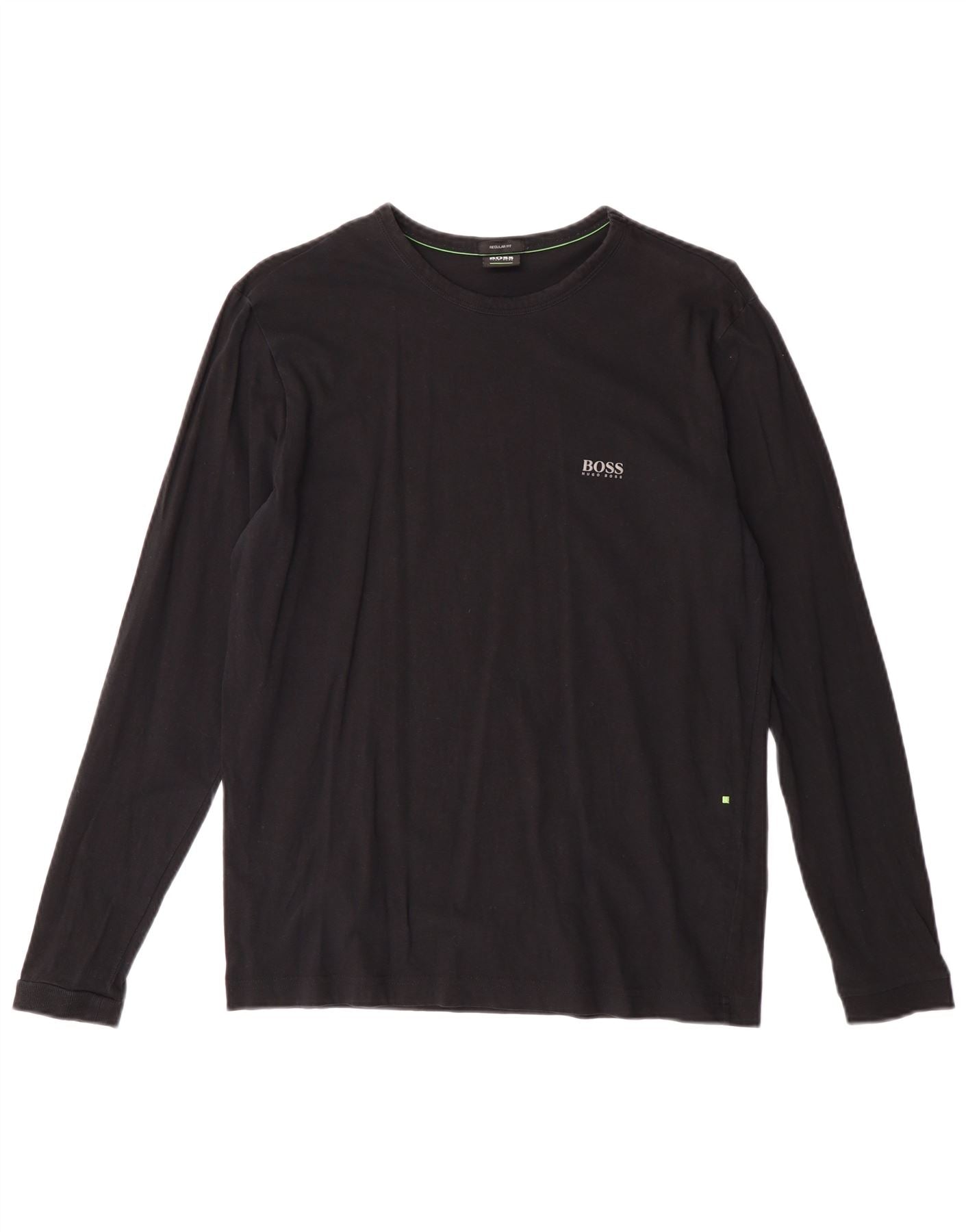 HUGO BOSS Mens Regular Fit Top Manga Longa Pequeno Algodão Preto