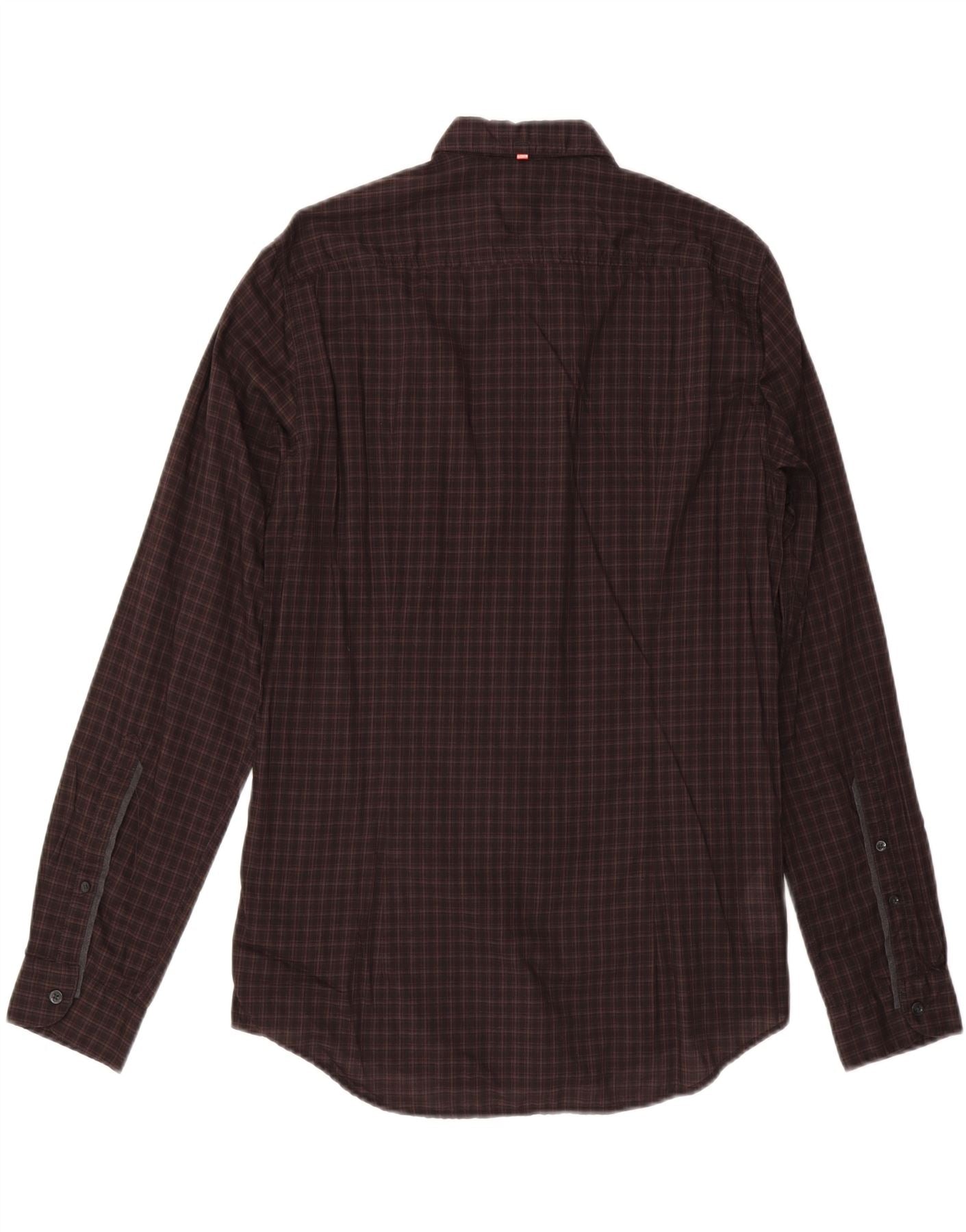 HUGO BOSS Mens Shirt Medium Brown Check Cotton