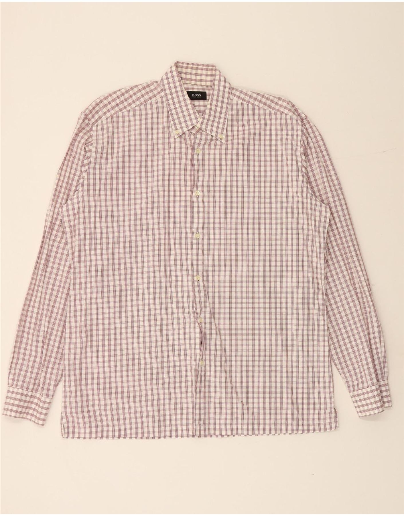 Camisa masculina HUGO BOSS tamanho 16 41 grande algodão xadrez branco