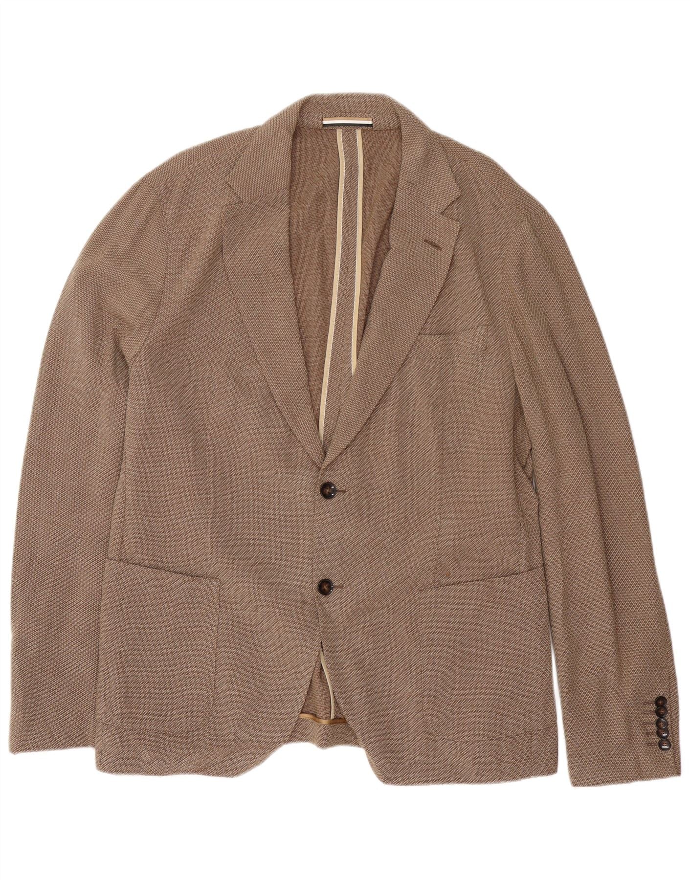 Jaqueta blazer masculina Hugo Boss Slim Fit 2 botões UE 56 3XL lã virgem marrom