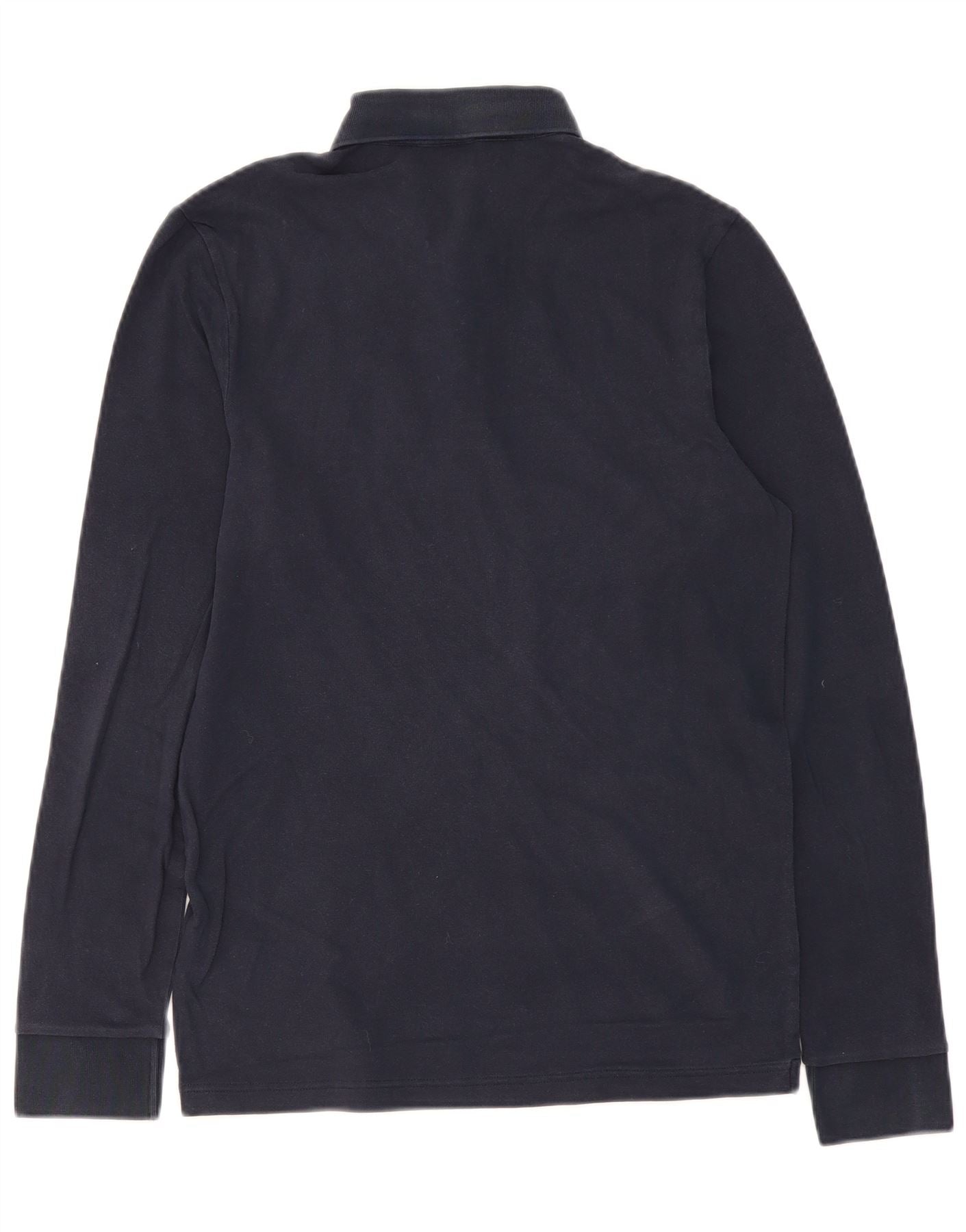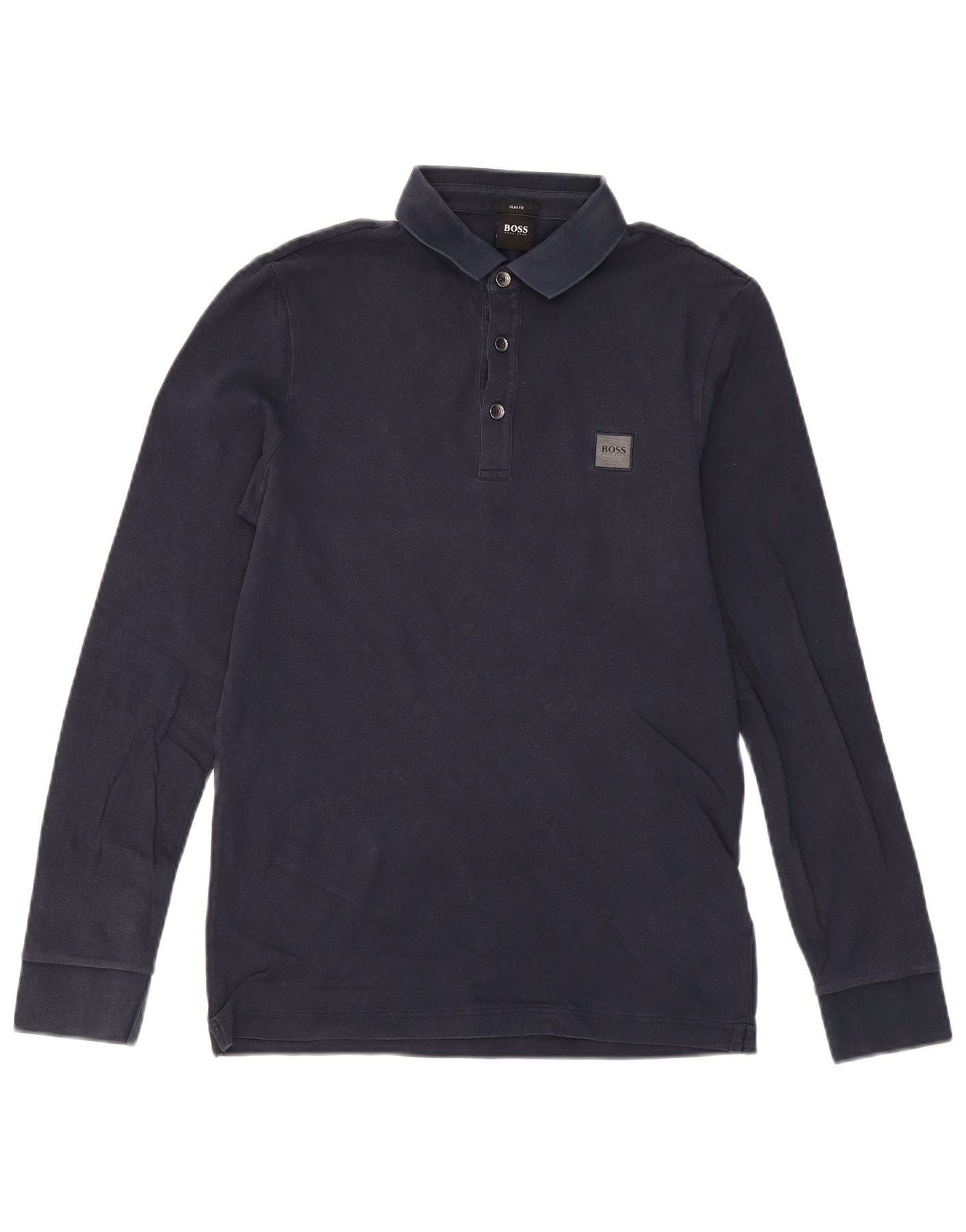 HUGO BOSS Camisa polo masculina slim fit de manga comprida de algodão azul marinho médio