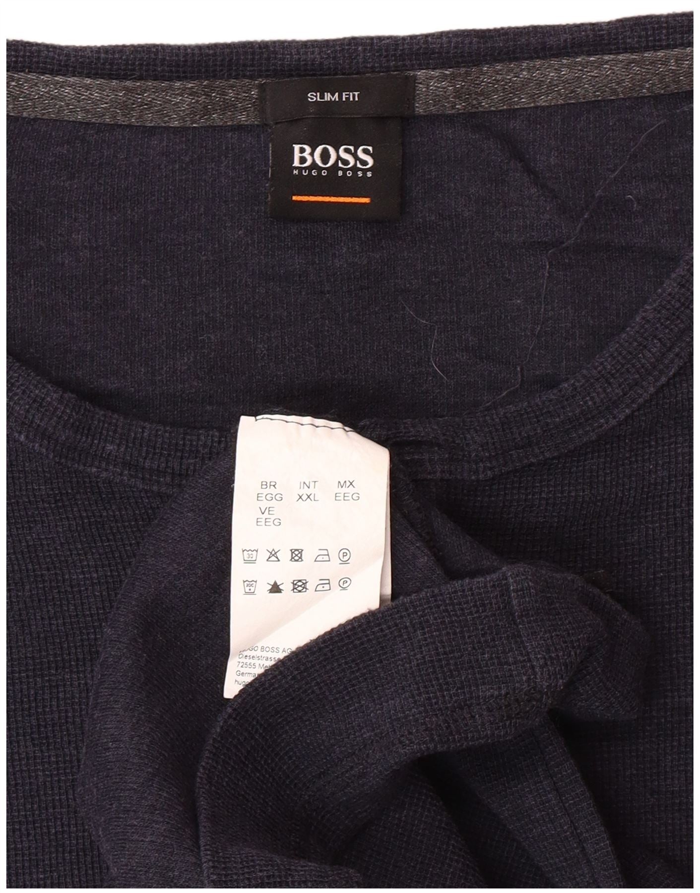 HUGO BOSS Masculino Slim Fit Top Manga Longa 2XL Algodão Azul Marinho