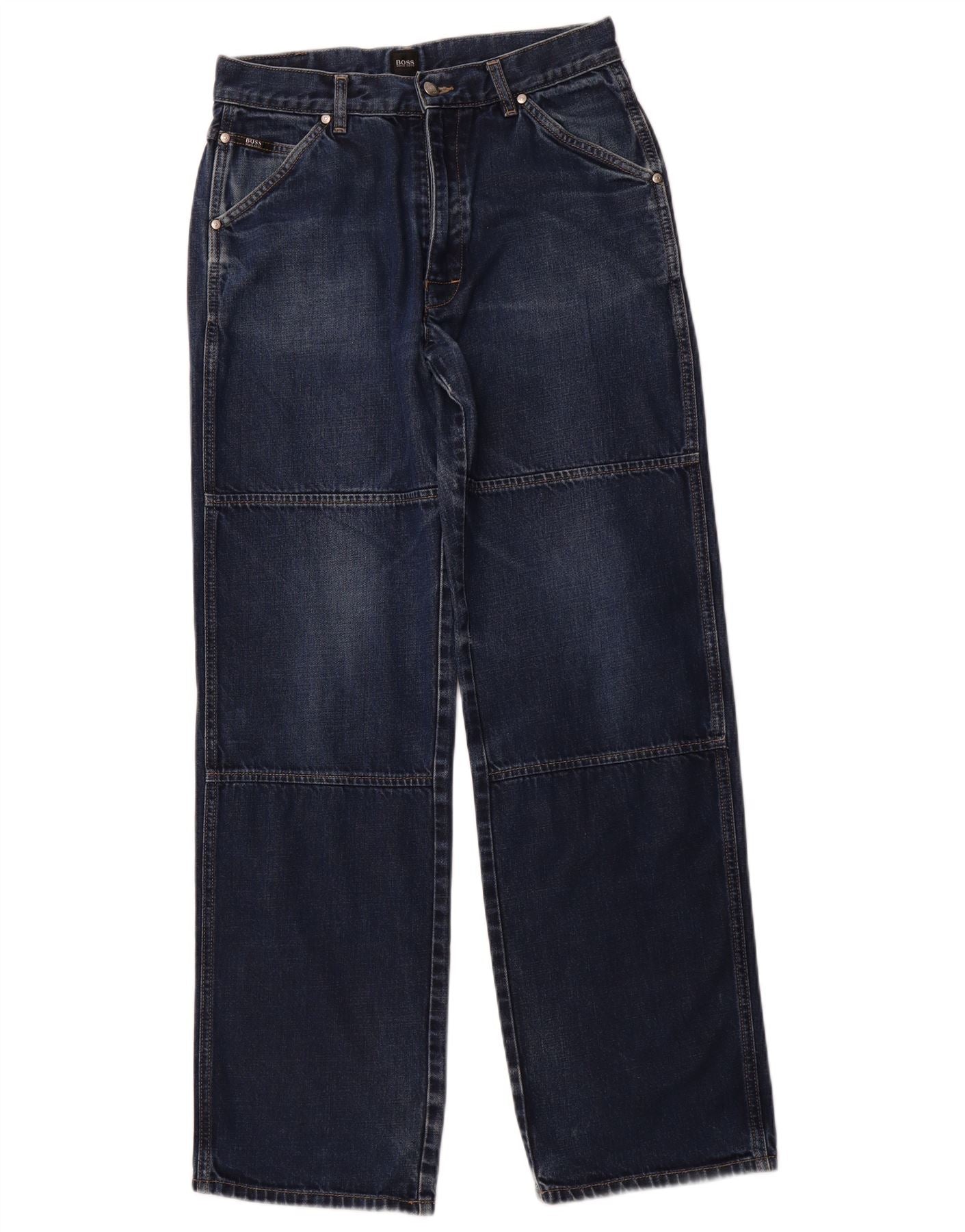 HUGO BOSS Calça jeans reta masculina W31 L34 azul marinho algodão