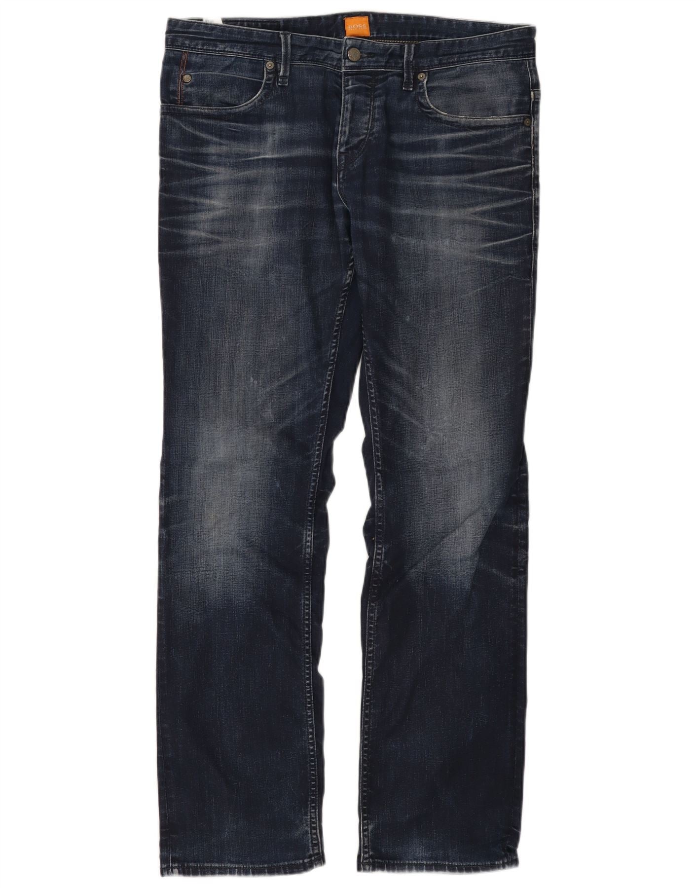 HUGO BOSS Jeans retos masculinos W34 L32 algodão azul marinho
