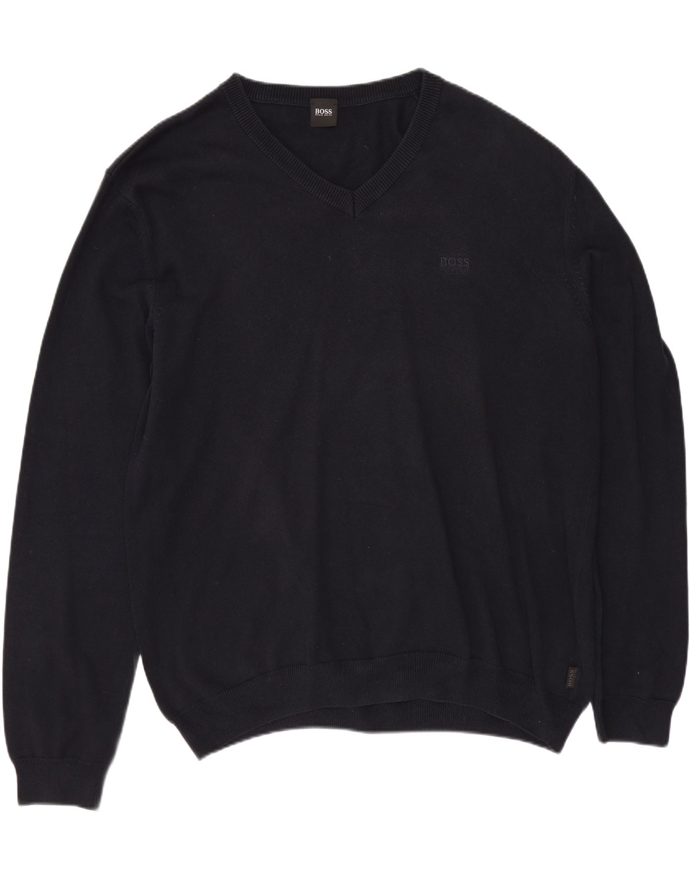 Suéter masculino HUGO BOSS com decote em V XL azul marinho algodão