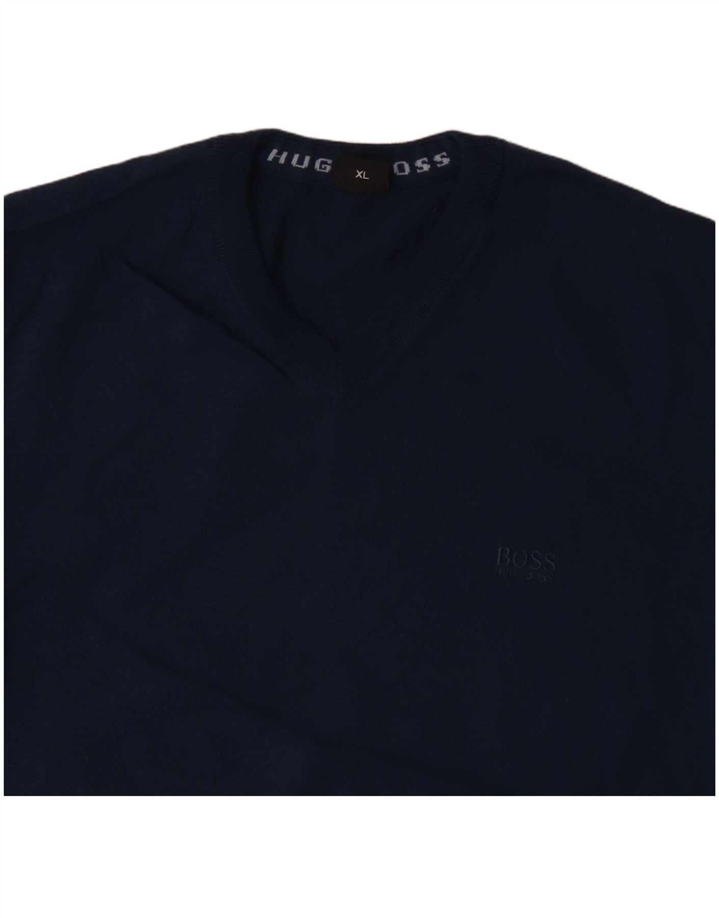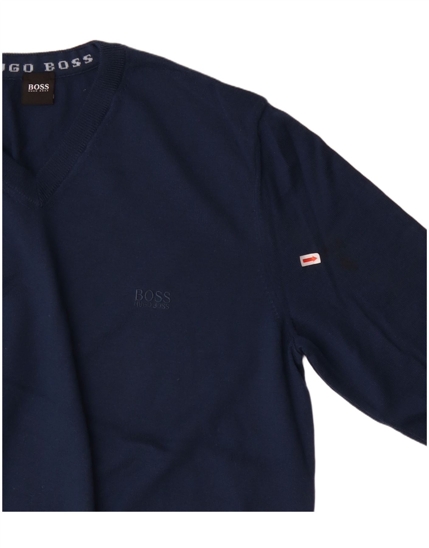 Suéter masculino HUGO BOSS com decote em V XL lã azul marinho