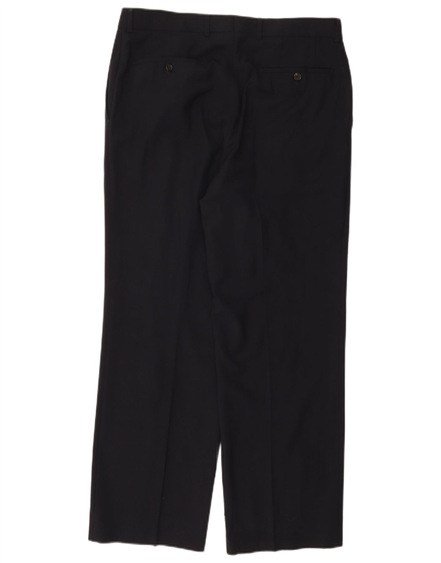 Calça feminina de terno reto HUGO BOSS W34 L31 azul marinho lã virgem