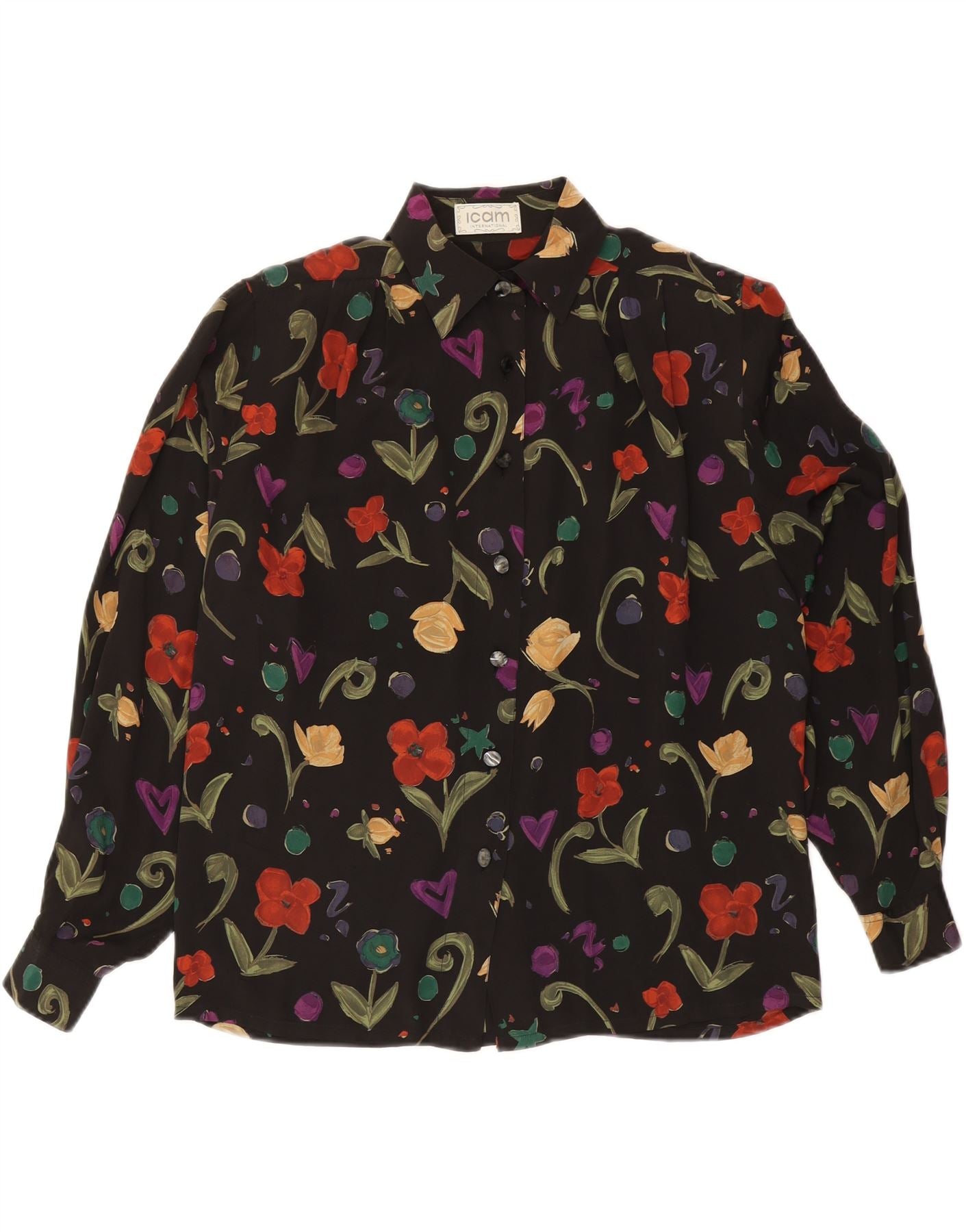 Blusa feminina ICAM IT 46 grande acetato floral preto