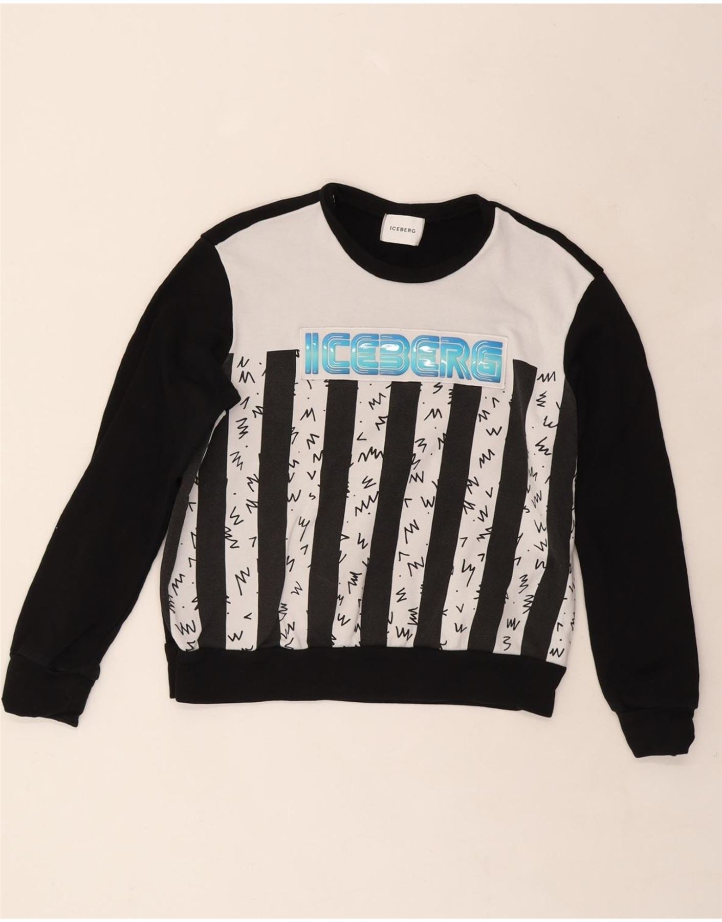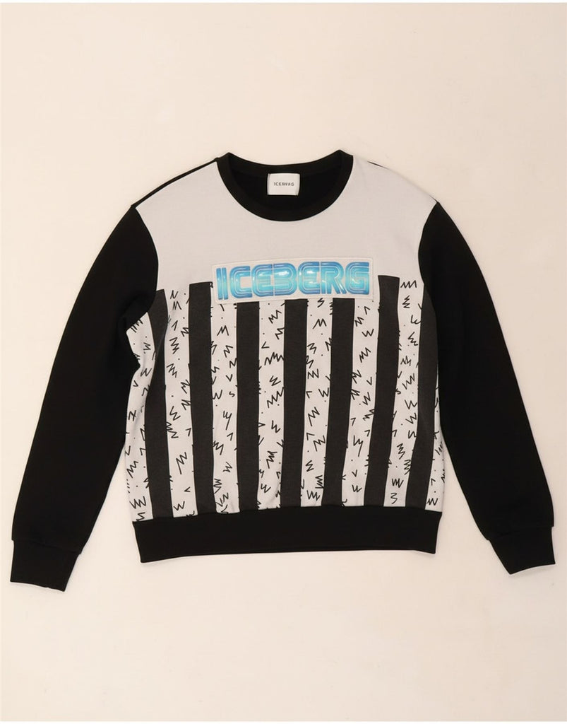 ICEBERG moletom gráfico feminino jumper IT 44 algodão listrado preto médio