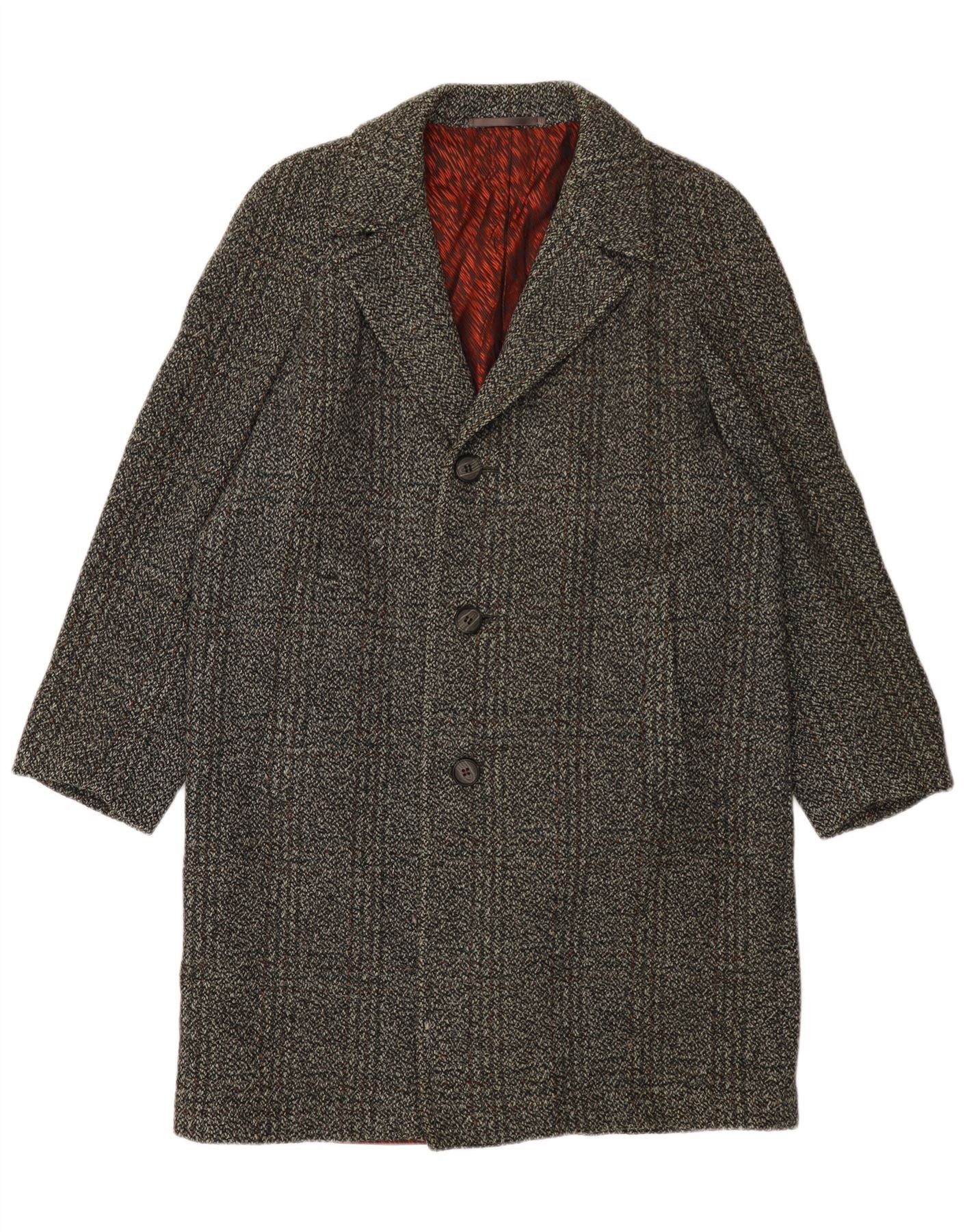 Sobretudo masculino IDEAL UK 40 grande cinza xadrez lã nova