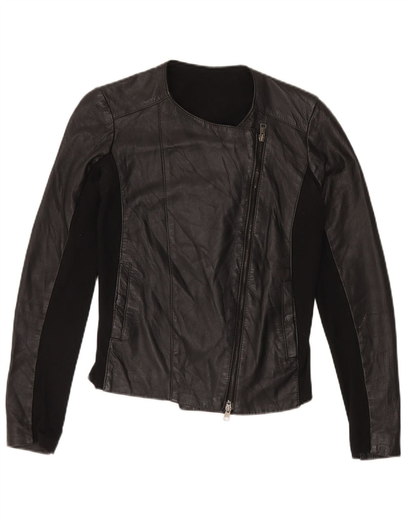 IMPERIAL Womens Leather Jacket UK 10 Small Black Colourblock Leather