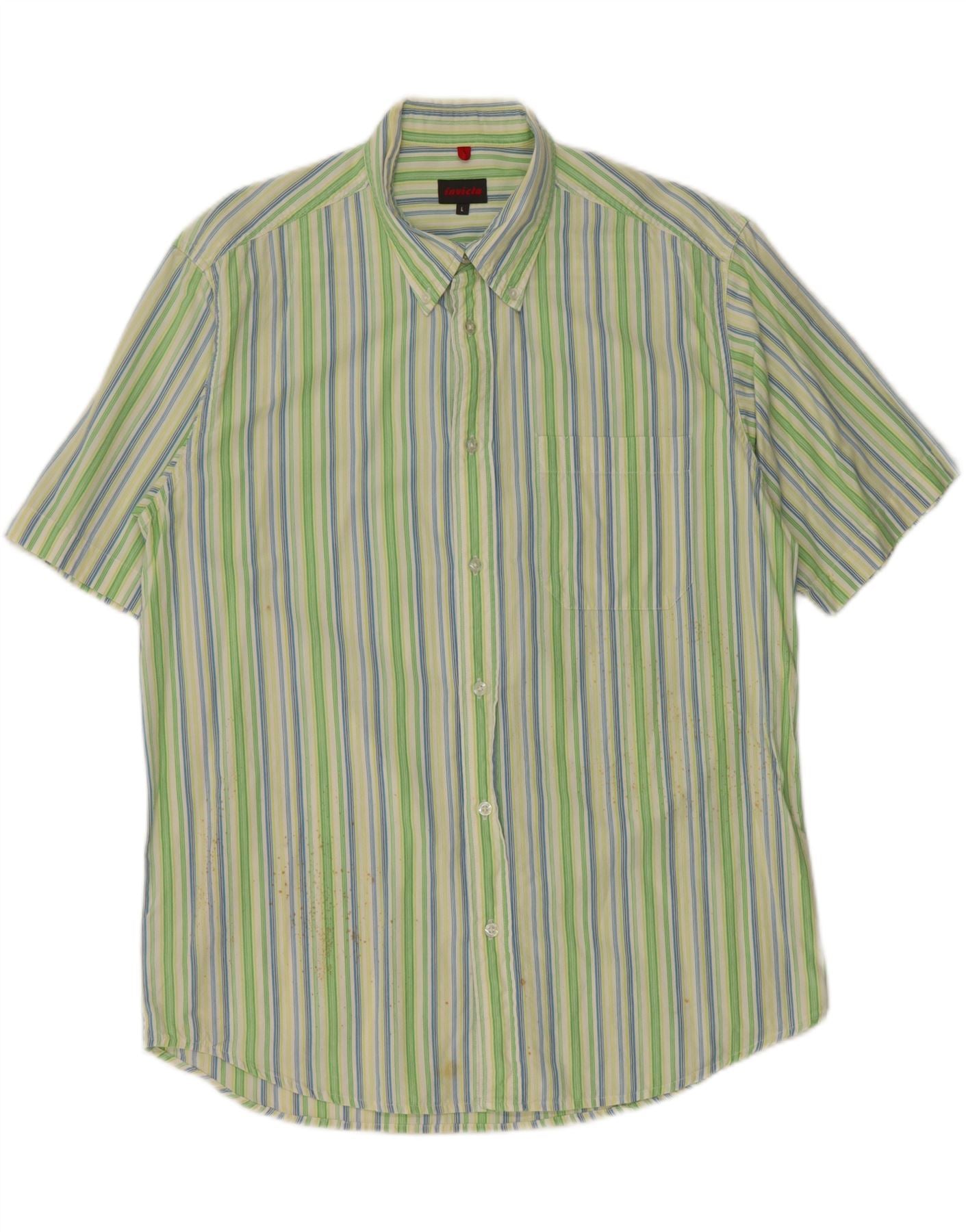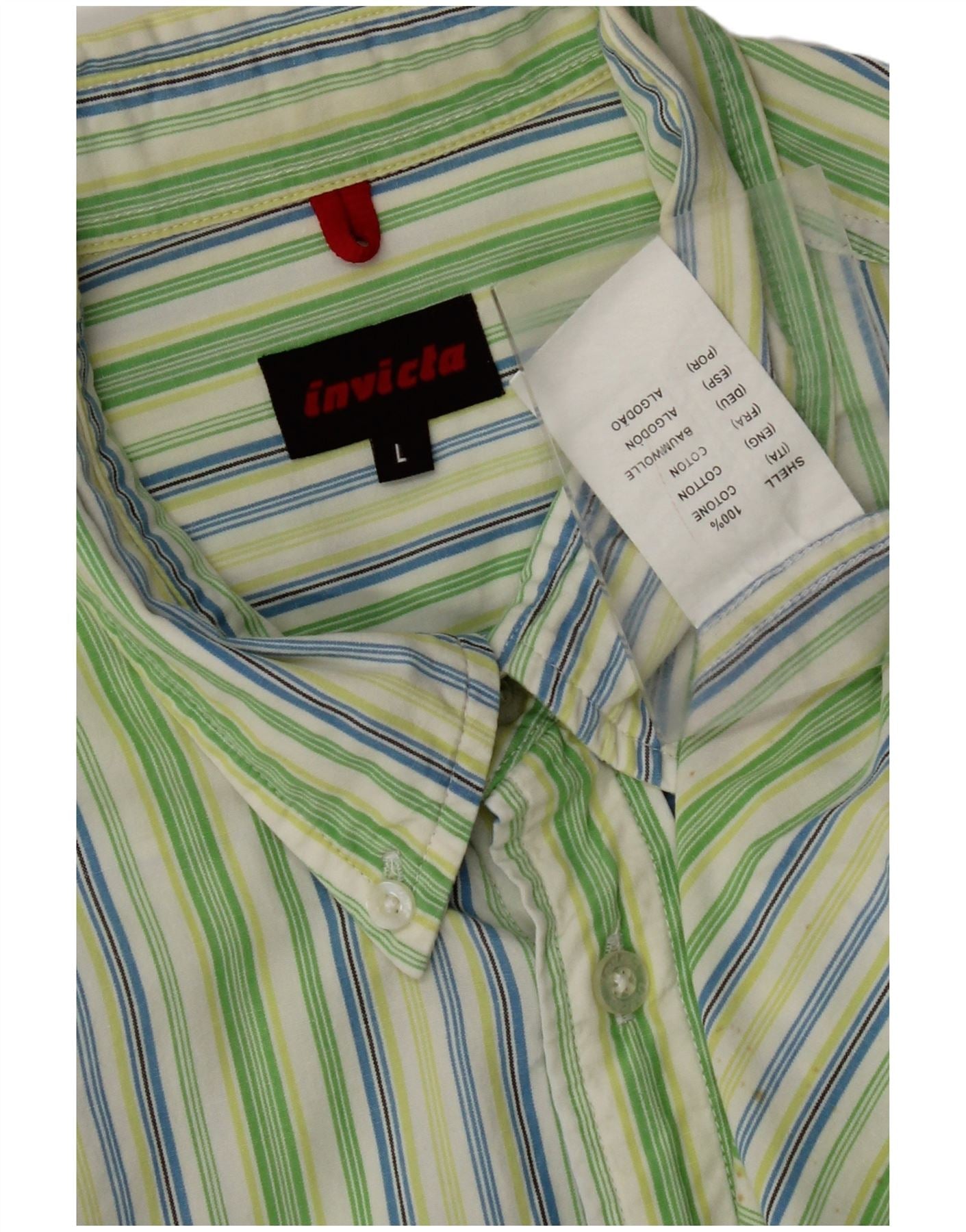 INVICTA Mens Short Sleeve Shirt Large Green Striped Cotton