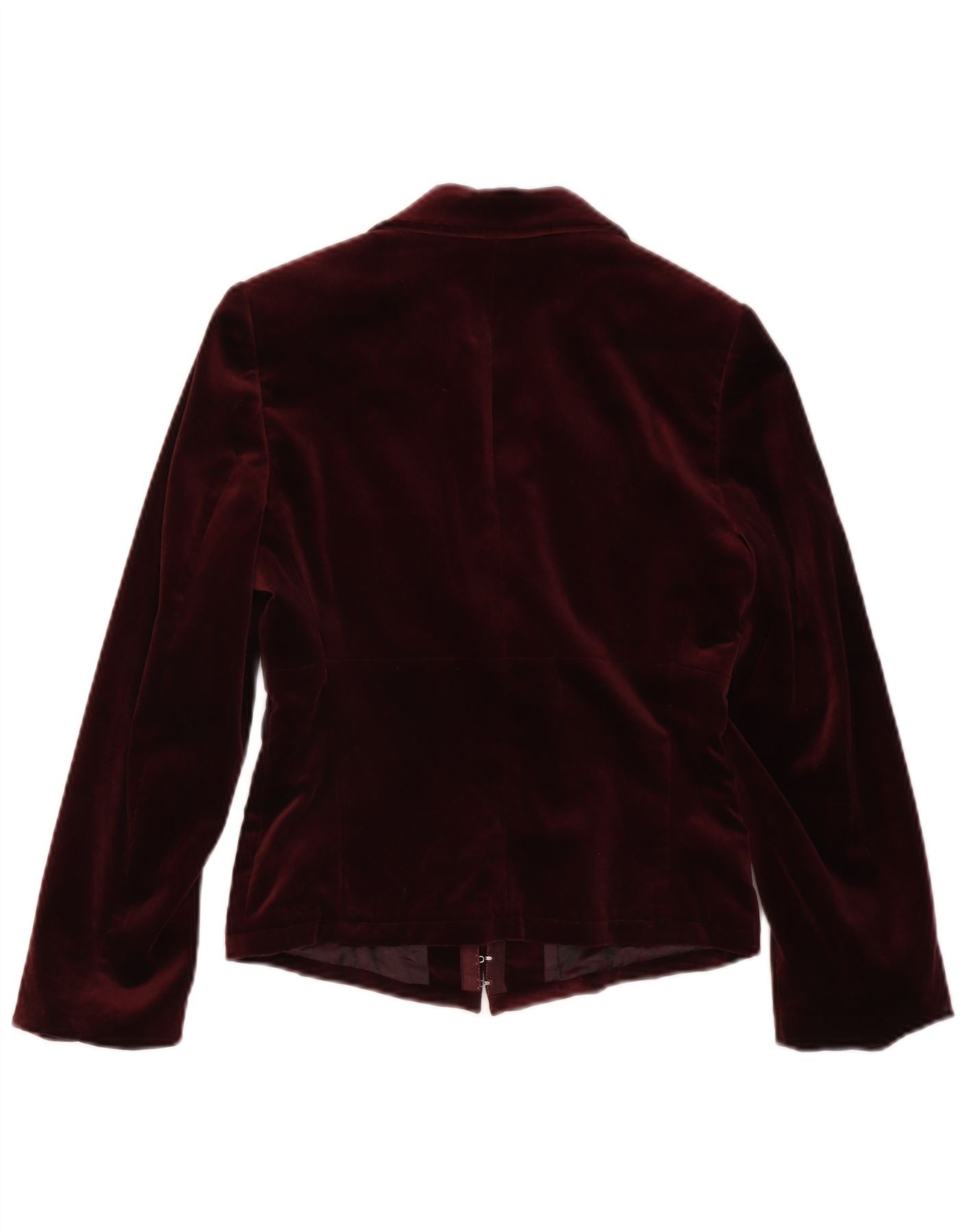 - Descrição da IA: Esta jaqueta blazer feminina Isabel De Pedro é confeccionada em luxuoso veludo bordô. O decote com gola e as mangas compridas oferecem uma silhueta sofisticada. Possui um fecho discreto de gancho e olho para uma frente perfeita. O ajuste regular garante conforto e formato clássico. Este casaco forrado proporciona um acabamento requintado e elegante.