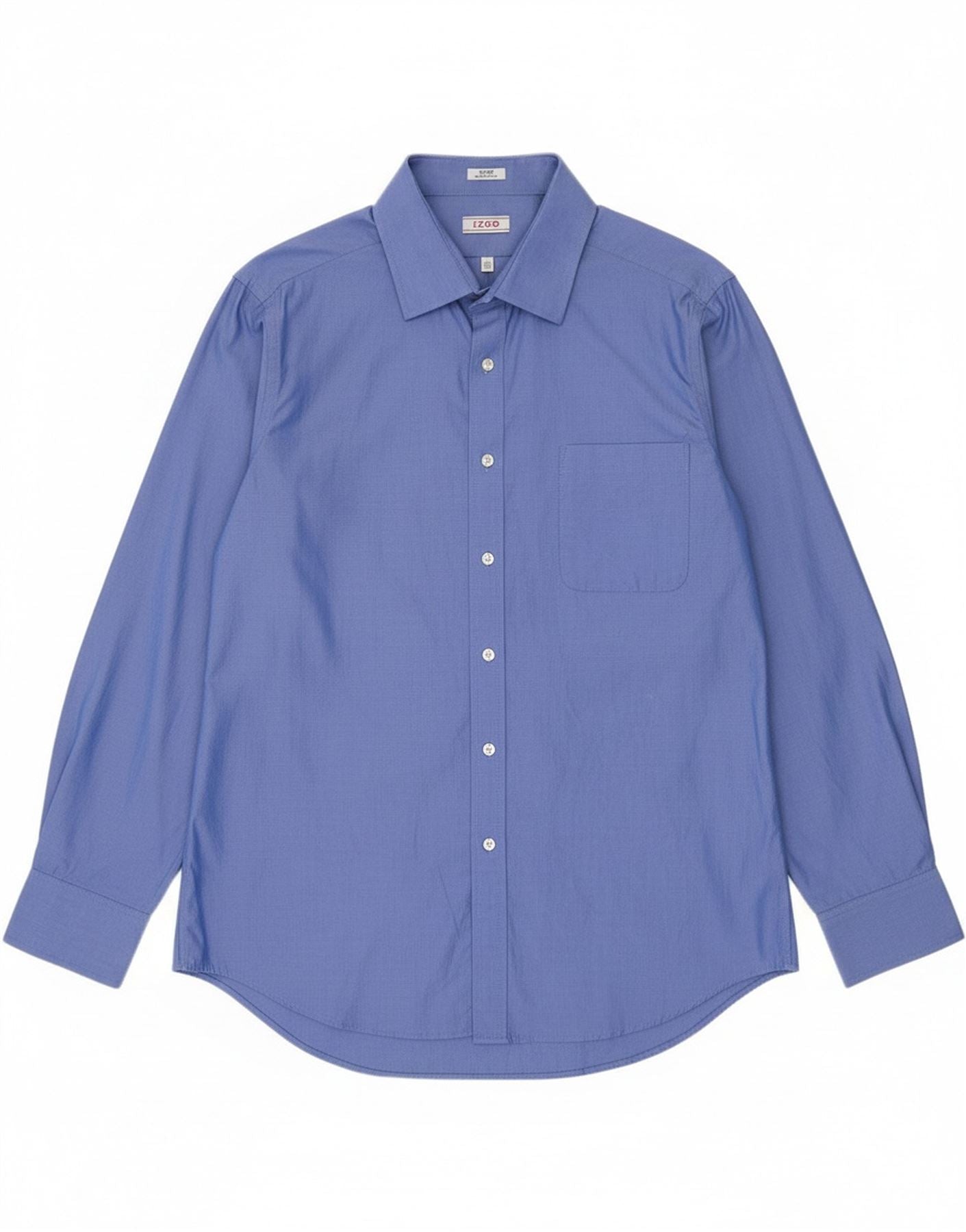 Camisa masculina Izod Easy Care tamanho 16 1/2 grande algodão azul