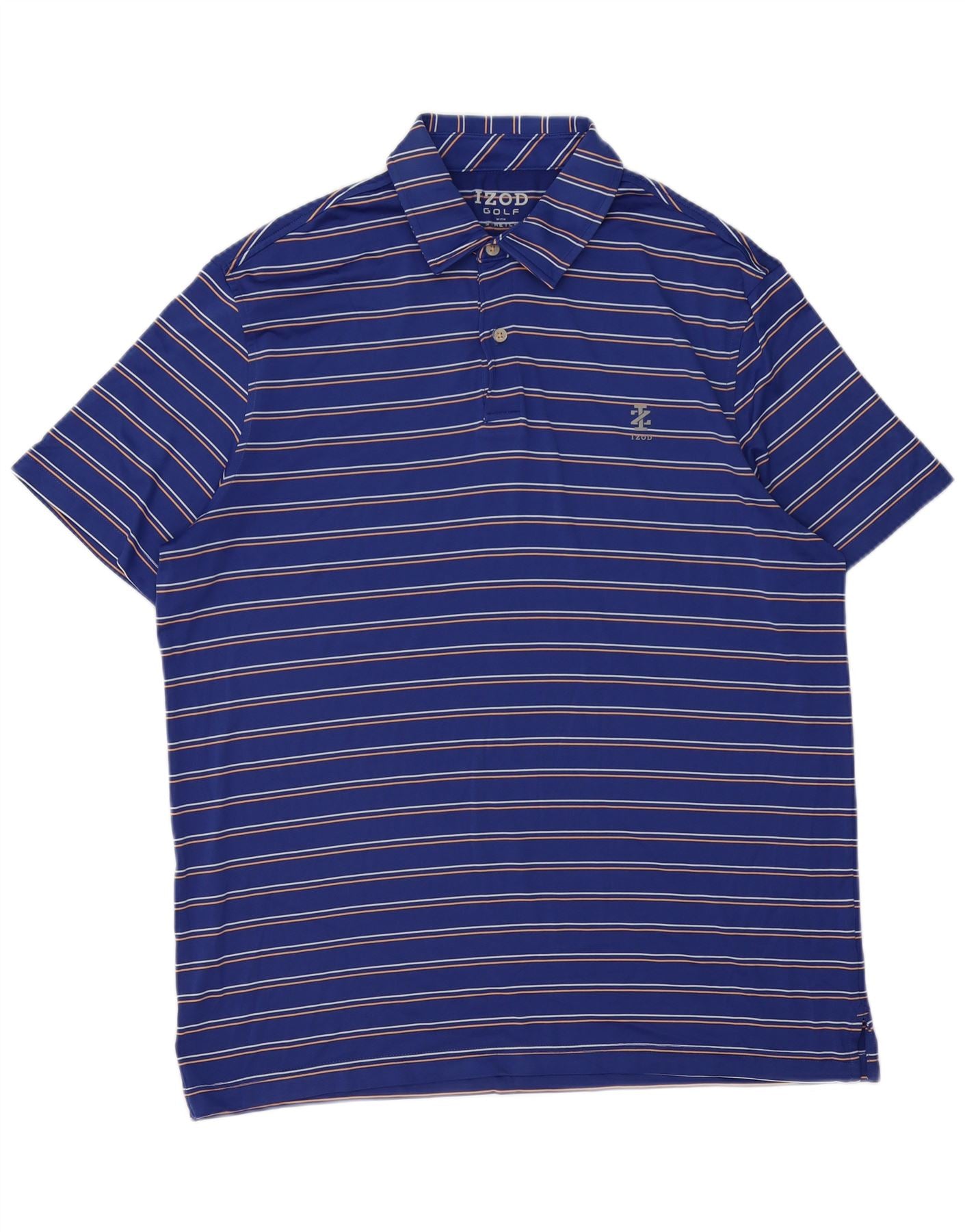 Camisa polo masculina de golfe IZOD grande poliéster listrado azul