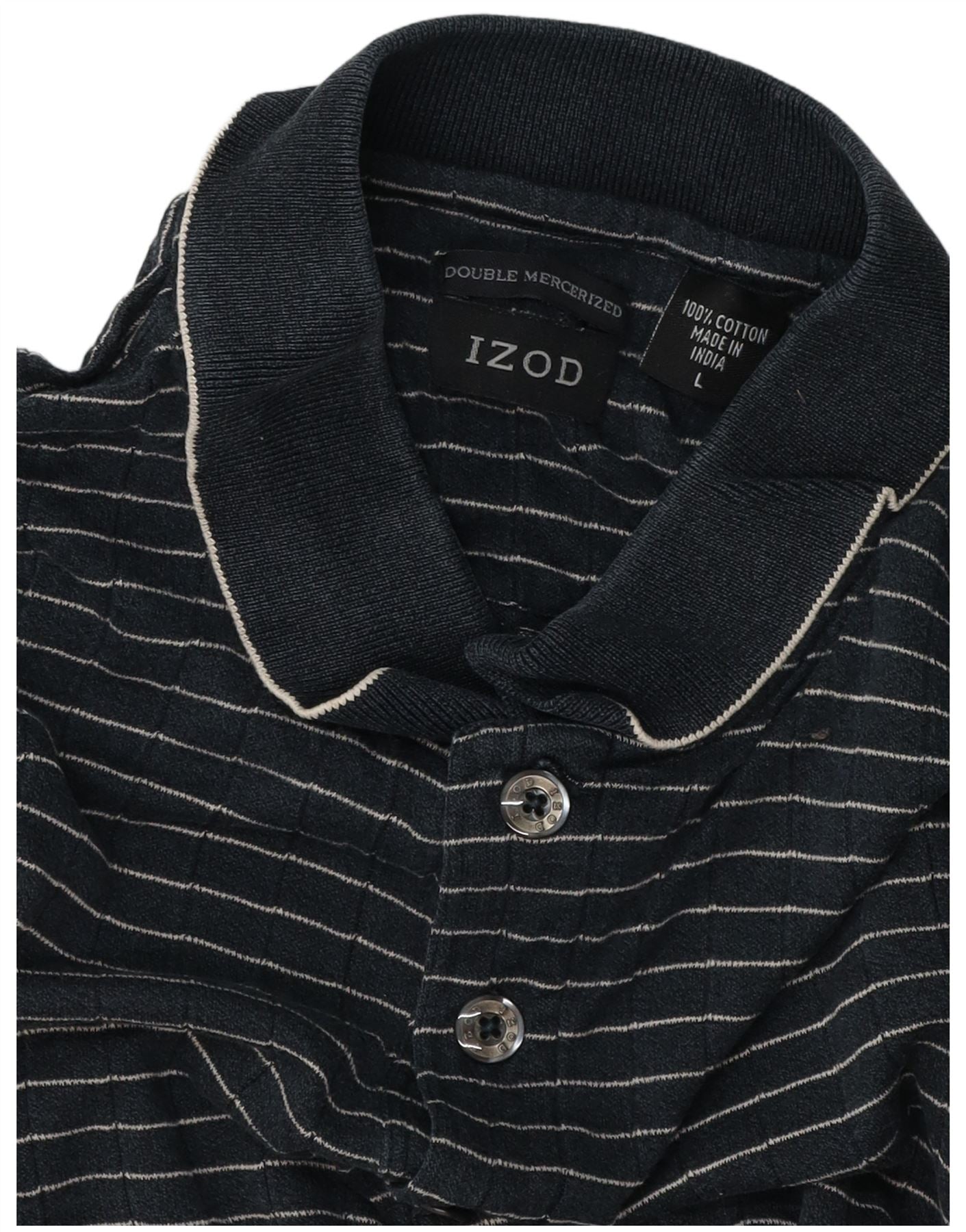 Camisa polo masculina IZOD grande algodão listrado azul marinho