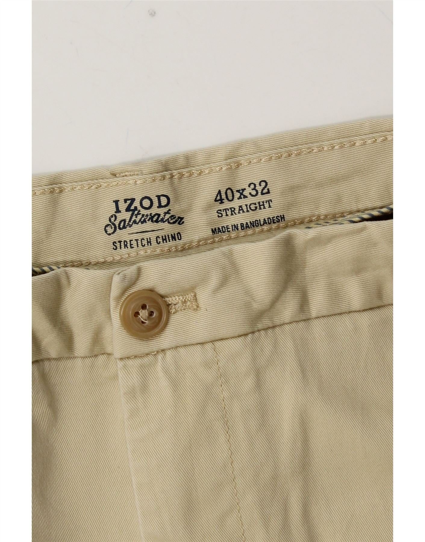 Calça chino reta masculina IZOD água salgada W40 L32 algodão bege